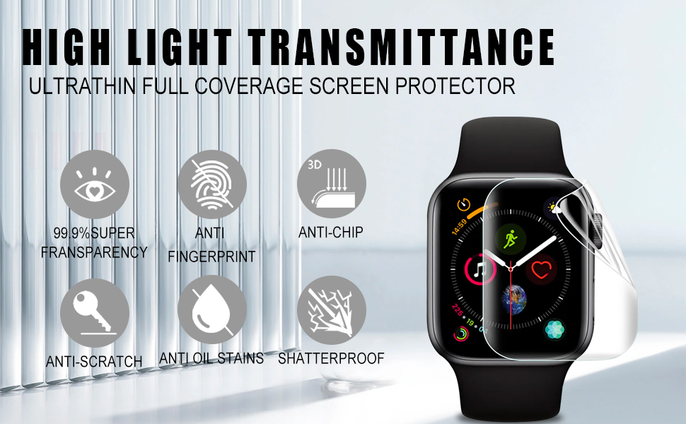 【Ultra Thin & Sensitive】 This 45mm Apple Watch screen protector is 0.03mm,ultra thin,flexible and transparency material ensure the reach more than 99.99% clarity and sensitive when you use your apple watch screen.