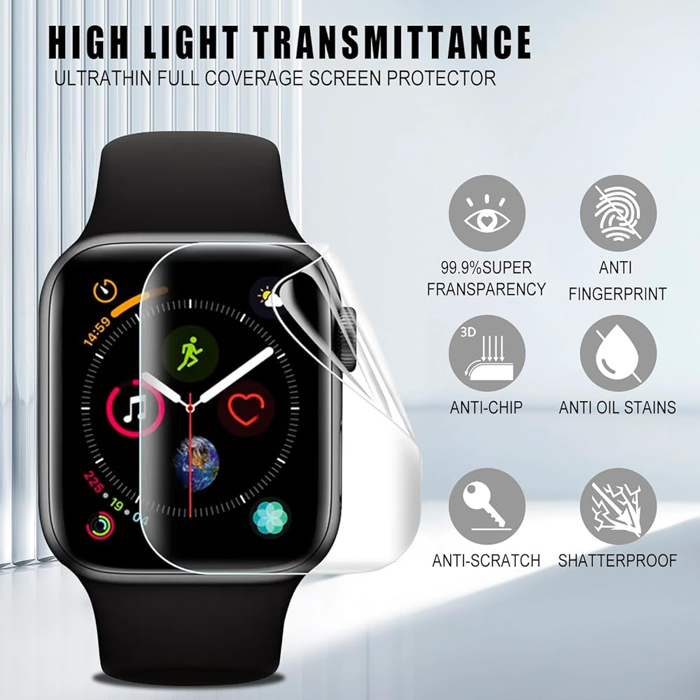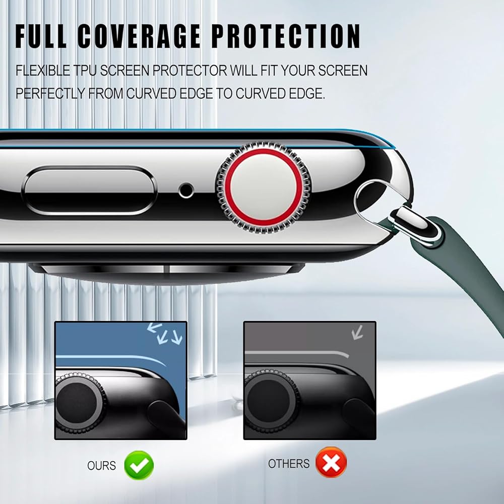 【Compatibility】 This Apple Watch Screen Protector is only compatible with Apple Watch Series 9/8/7 45mm,NOT for any other models,Please check carefully before purchase.Includes 8 packs of Apple Watch 7/8/9 screen protector 45mm,Apple TPU watch film can provide comprehensive protection for your iWatch screen face.