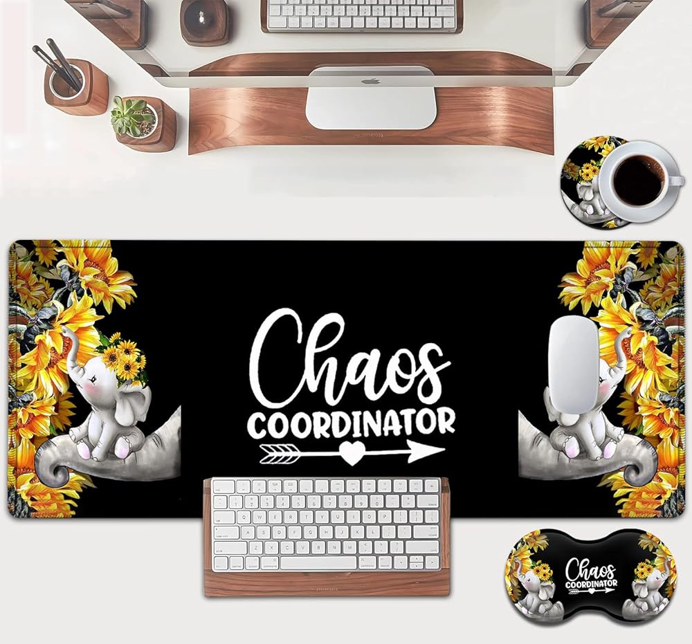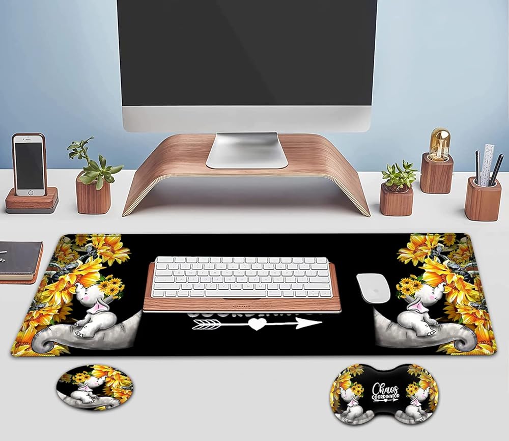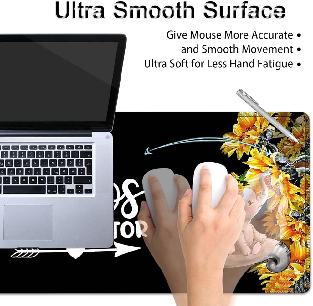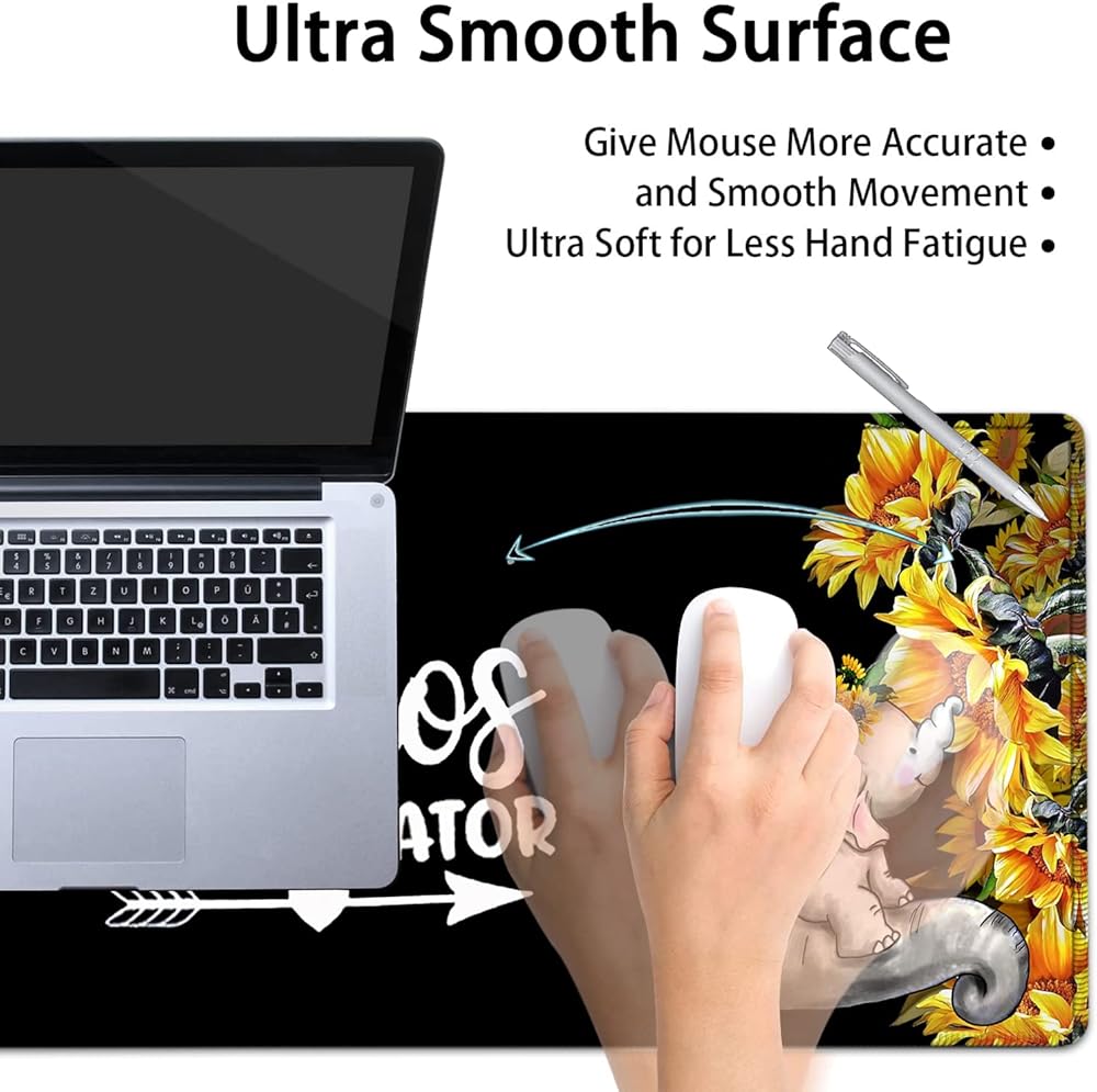 Large Mouse Pad, Extended Office Desk Pad, 31.5x11.8in, Ergonomic Memory Foam Mouse Wrist Rest Support for Home Office Computer Writing Pad Cute Baby Elephants + Sunflowers XXL Black Gaming Mouse Mat