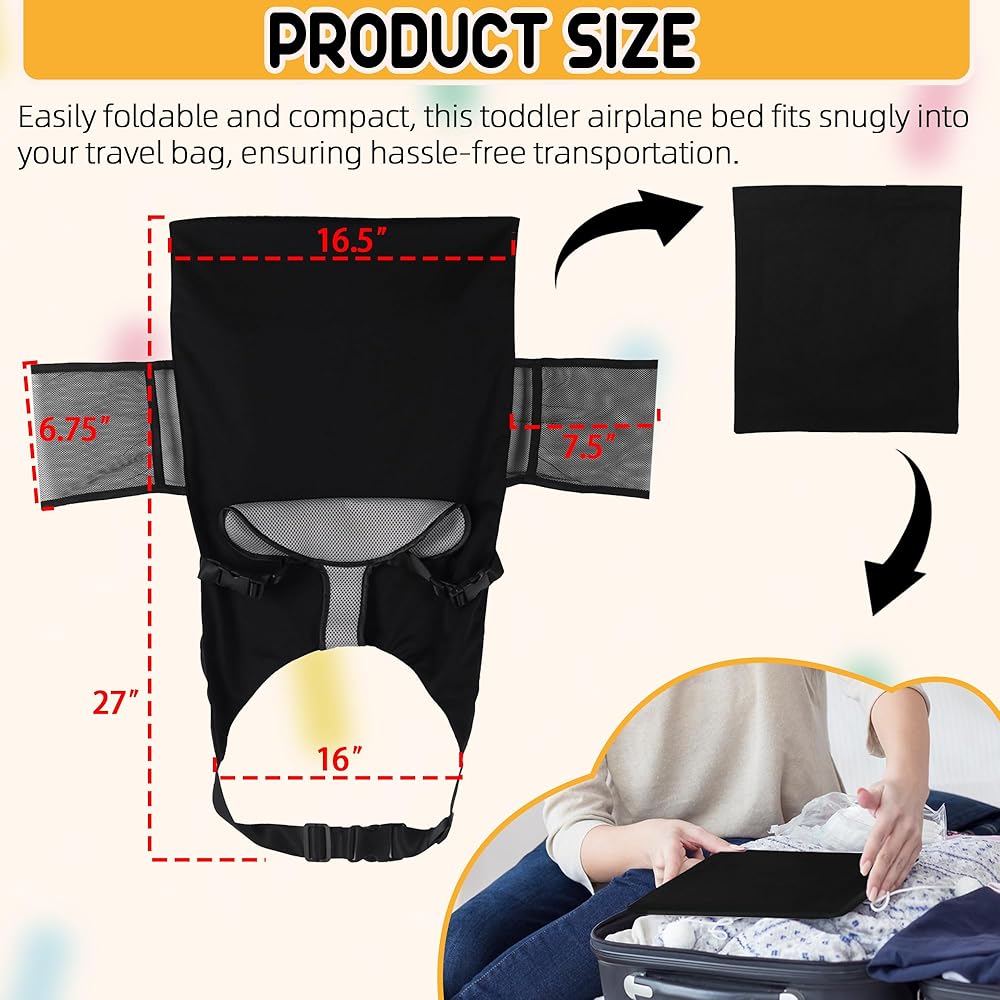 Baby Airplane Seat Extender for Flying Travel, Toddler Travelling Bed for Airplane Seats, Portable Infant Seat Extender for Airplanes, Baby Travel Essentials for Flying - Black