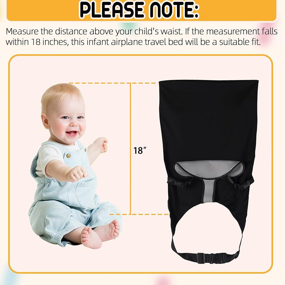 BEFORE PURCHASING, HERE'S A HELPFUL TIP TO CONSIDER - Measure the distance above your child's waist. If the measurement falls within 18 inches, this infant airplane travel bed will be a suitable fit.