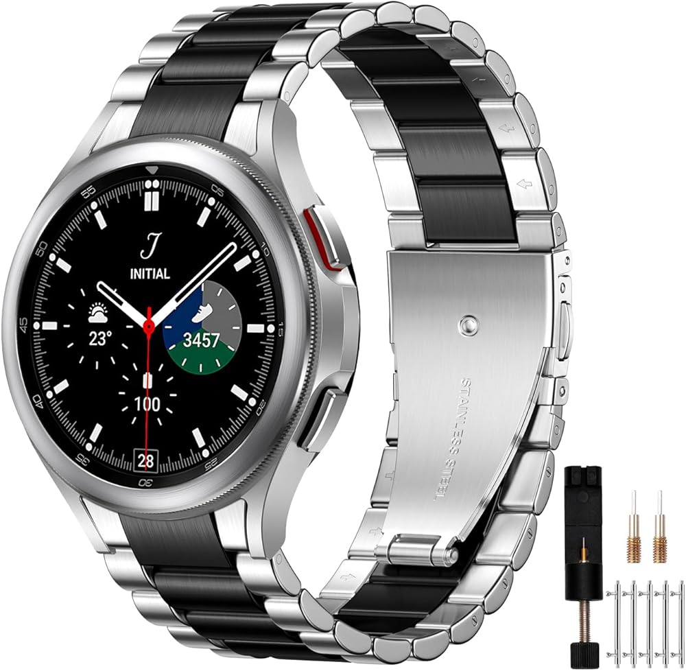 ✅【Package and After-sales service】1 stainless steel strap for Samsung Galaxy Watch 6/5/4, 1 installation instruction, 5 spring pins, 1 removal tool.If you have any problems, please feel free to contact us, our friendly and professional customer service team will solve it for you within 24 hours
