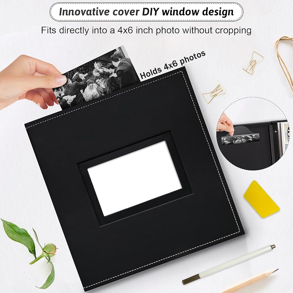💞Fits various sizes of photos: Our photo album accommodates pictures of 4x6 5x7 8x10 photos with options of 20/30 pages. And the front window can hold 4x6 photo. The little dimensions of the 20-page album are 10.5 x 11.1 x 1.4 inches, making it a convenient and spacious choice for preserving your precious memories.