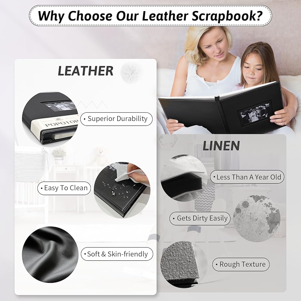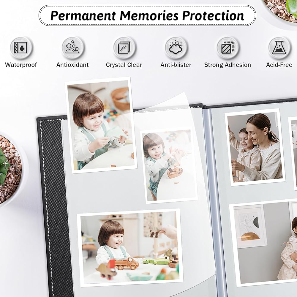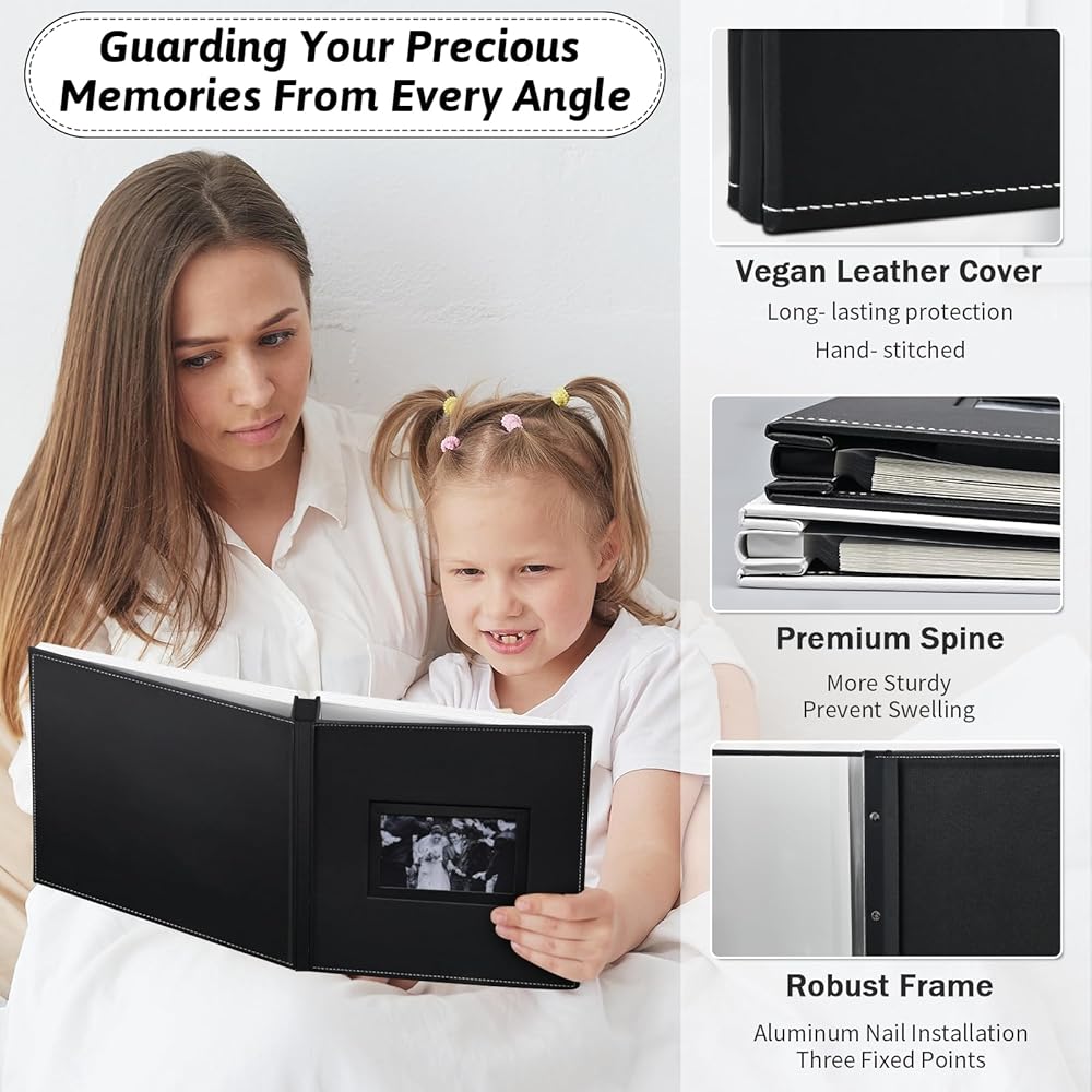 📖Enduring inner pages: The white inner pages of our albums are crafted with utmost care, made from acid-free and PVC-free materials. Not only do they protect your photographs from dust, water, oxidation, tears, and wrinkles, but they also preserve the emotions and stories they hold. Every touch of these pages evokes a flood of memories, transporting you back to those special times.