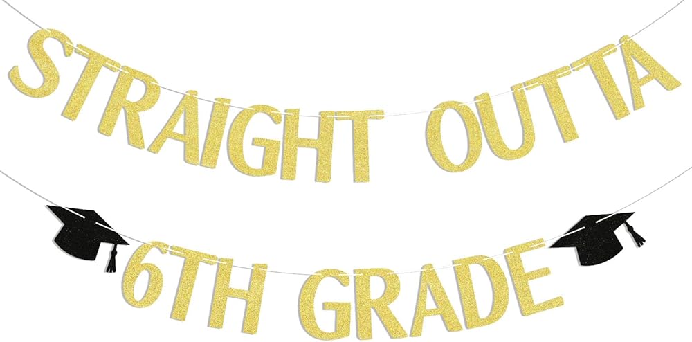 ●1x Gold Glitter "Straight Outta 6th Grade" Banner (Lettering Space can be adjusted to a desired width)