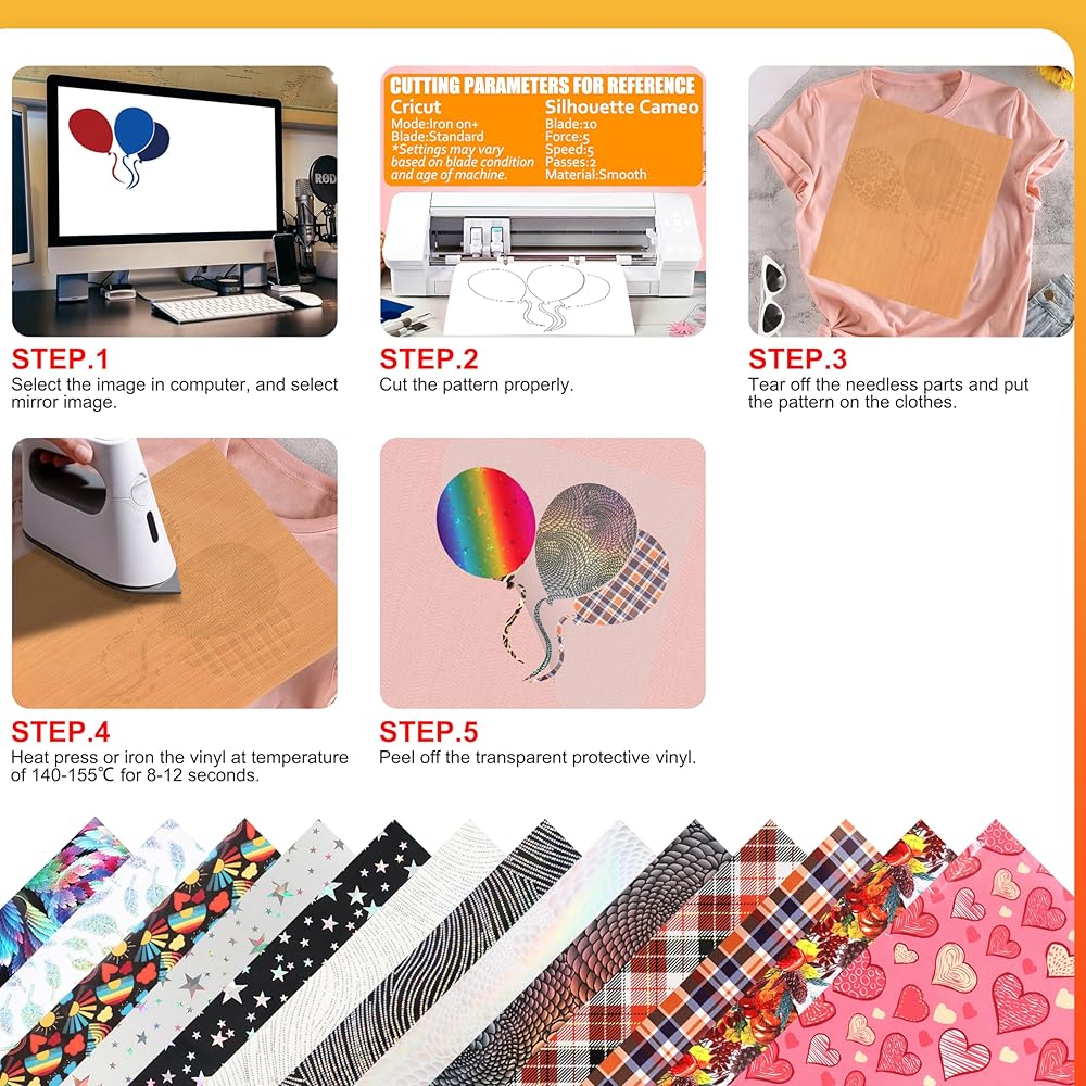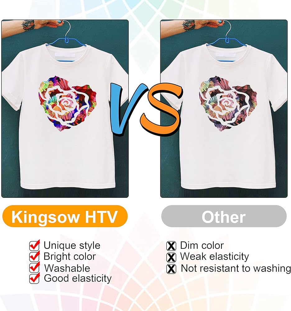 [SUPERIOR QUALITY]-✔The Vinyl is PU based ,has a strong and thick surface and is easy to cut & weed. Seamlessly integrates with Silhouette,Cameo 3, Cricut Explore Air 2,and Cricut Maker machines. You can just use the home iron and scissors to finish the whole process. Our vinyls adhere to the fabric seamlessly and will hold up well during the wash. No fading, no peeling off and no cracking.