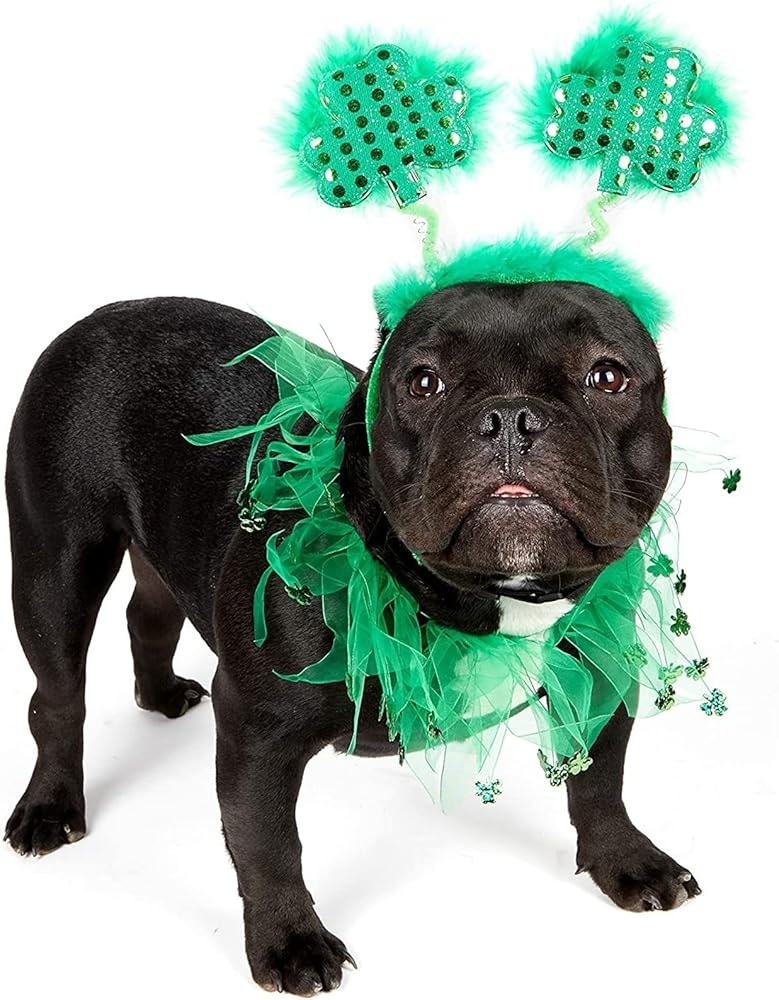 Cute Irish Themed Costume for Dogs: Give this dog costume set to the pet lovers in your life; the versatile collar and adjustable headband takes the guesswork out of sizing and allows you to secure the outfit onto most large and medium dog breeds
