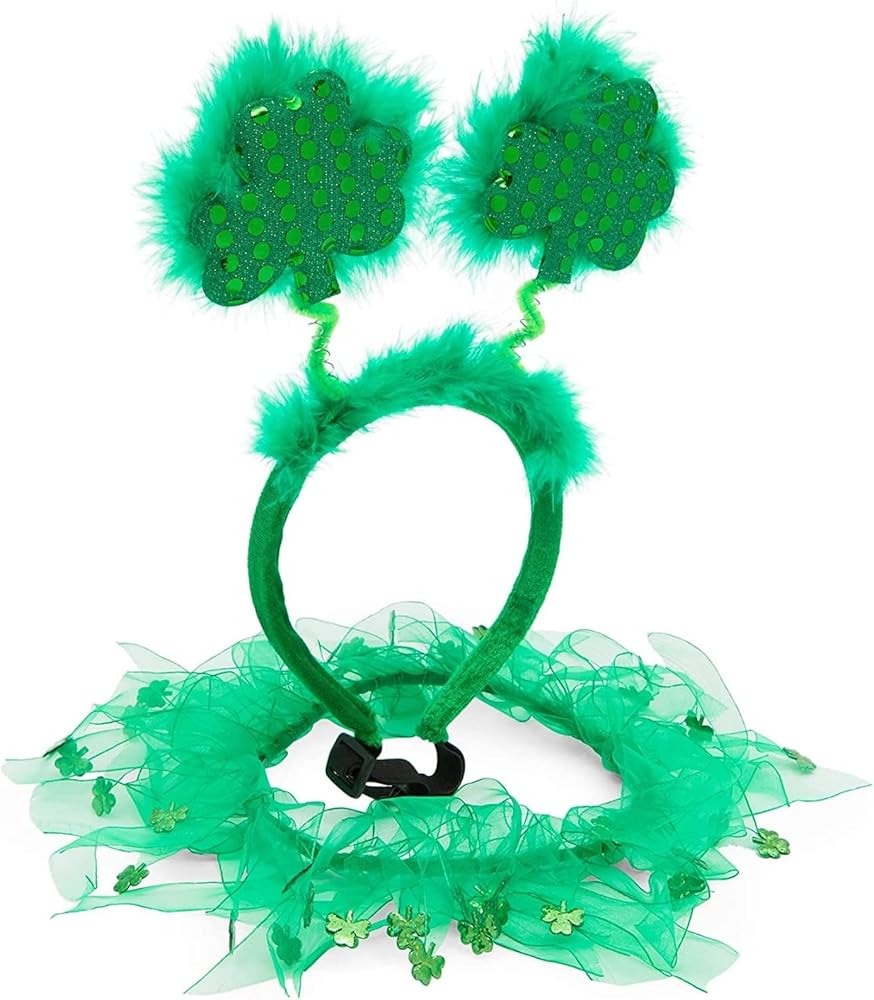 What's Included: You'll receive 1 clover-themed antenna headband and 1 green tutu collar with shamrock rhinestones