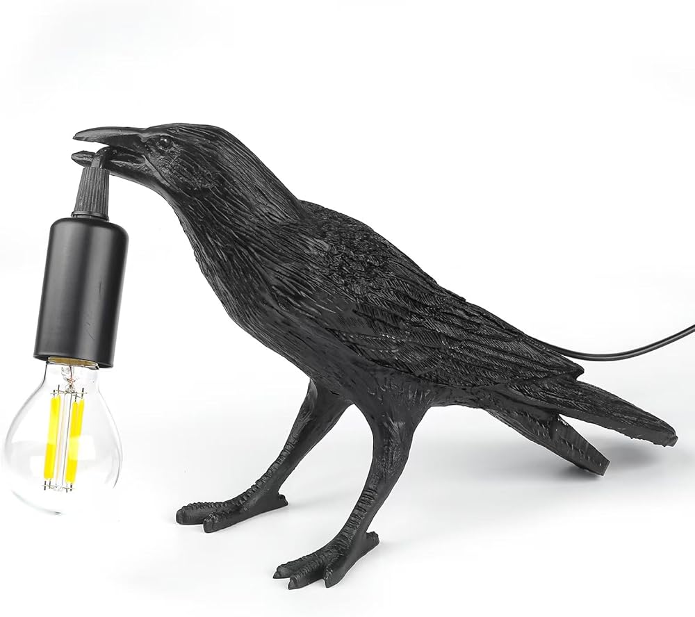 PREMIUM MATERIAL: This unique Raven table lamp is carved from resin, has enough weight and is very sturdy.