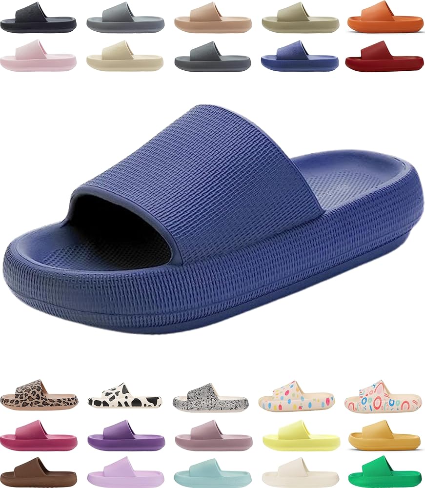 1. Pillow Slippers for Women and Men, House Slides Shower Sandals, Extremely Comfy, Cushioned Thick Sole 2. Cloud Slippers for Women and Men, Pillow House Slippers Shower Shoes Indoor Slides Bathroom Sandals, Ultimate Comfort, Lightweight, Thick Sole, Non-Slip, Easy to Clean 3. Pillow Slippers for Women and Men Non Slip Quick Drying Shower Slides Bathroom Sandals, Ultra Cushion, Thick Sole Women's Feather cloud recovery slide sandals with +Comfort