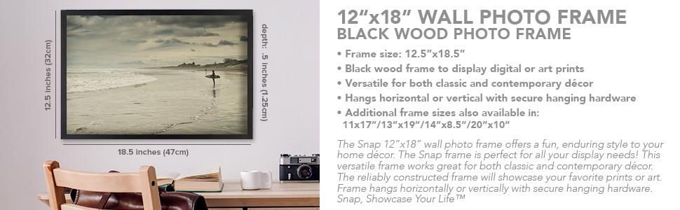Add a touch of sophistication to your living space with the contemporary elegance of the Gallery Solutions Black Wood Frame featuring a Double Black Mat. Crafted with meticulous attention to detail, this frame offers a sleek and modern aesthetic that effortlessly enhances any room's decor. The innovative Airfloat double mat design adds depth and dimension to your photos or artwork, creating a captivating visual effect that draws the viewer's eye. This patented matting technique provides a unique shadowing effect, elevating the presentation of your images to new heights of style and sophistication. Equipped with patented Wall Grabber hangers on the back, this frame allows for easy vertical display on your walls, ensuring a secure and stable mounting experience. Whether showcasing a single piece or creating a gallery wall arrangement, the versatile hanging options offer unparalleled convenience and flexibility in displaying your artwork. In addition to its wall-mounting capabilities, this frame also includes an easel back, allowing you to showcase your most cherished photos on mantels, desks, or any other flat surface. The easel back provides a sturdy and stylish support, ensuring that your images are beautifully displayed in any space. Constructed from high-quality solid wood, our Gallery Solutions Black frame boasts durability and longevity, offering a timeless backdrop for your favorite memories. The frame holds an image with a crisp white Airfloat. Whether adorning your living room, bedroom, or office, this frame is the perfect addition to any home decor, adding a touch of sophistication and style to your surroundings. Elevate your space and showcase your memories with the understated elegance of the Gallery Solutions Black Wood Frame.