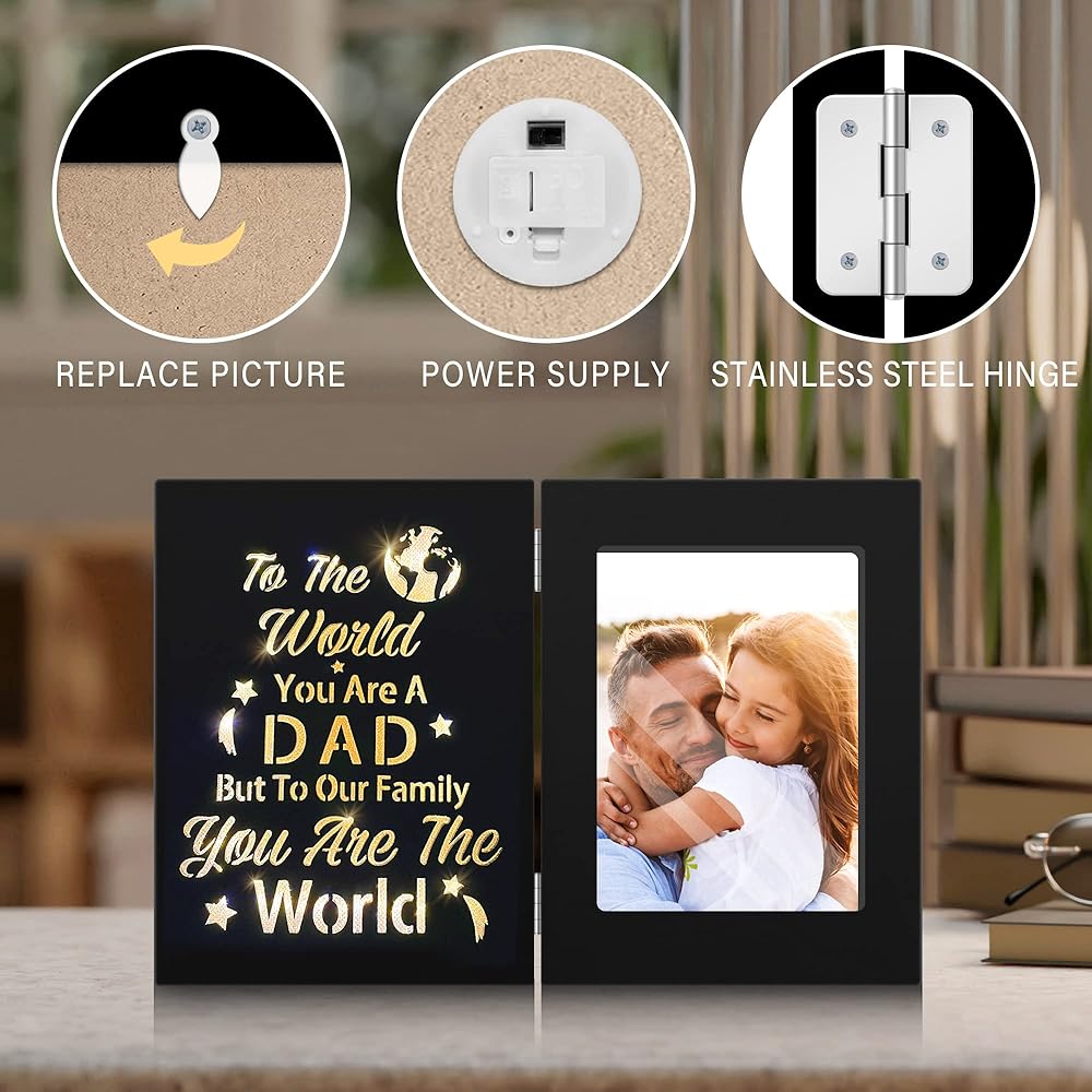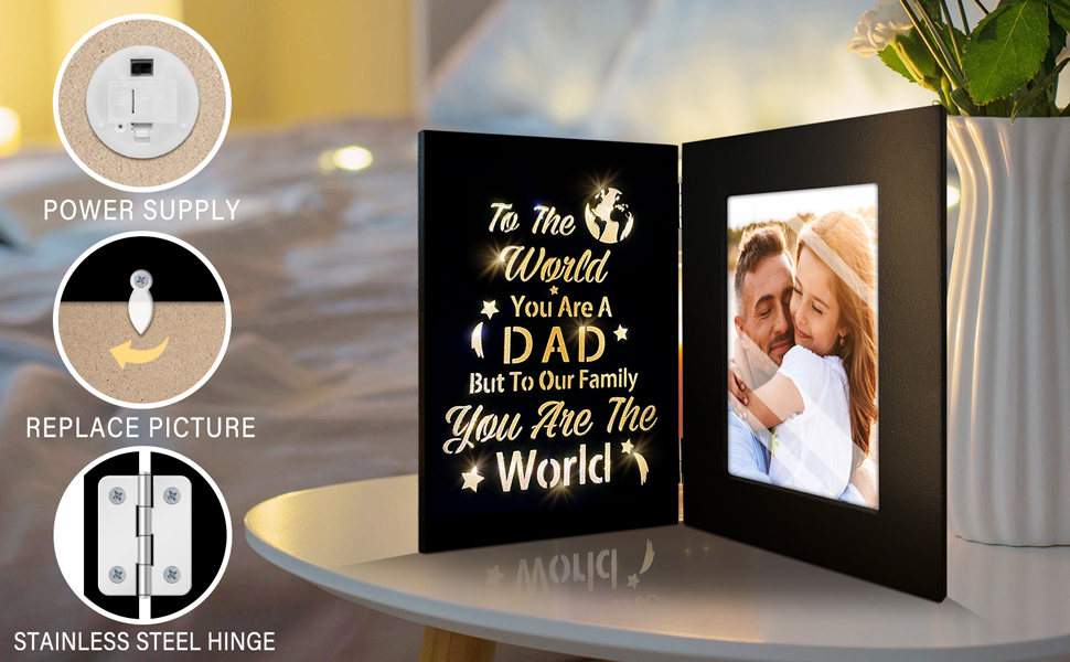 【Exquisite Dad Lighted Frame】 Made of MDF wood, finished with high quality glass and LED lights, this exquisite gifts for dad from daughter picture frame is carefully designed to protect your favorite picture and decorate your room.