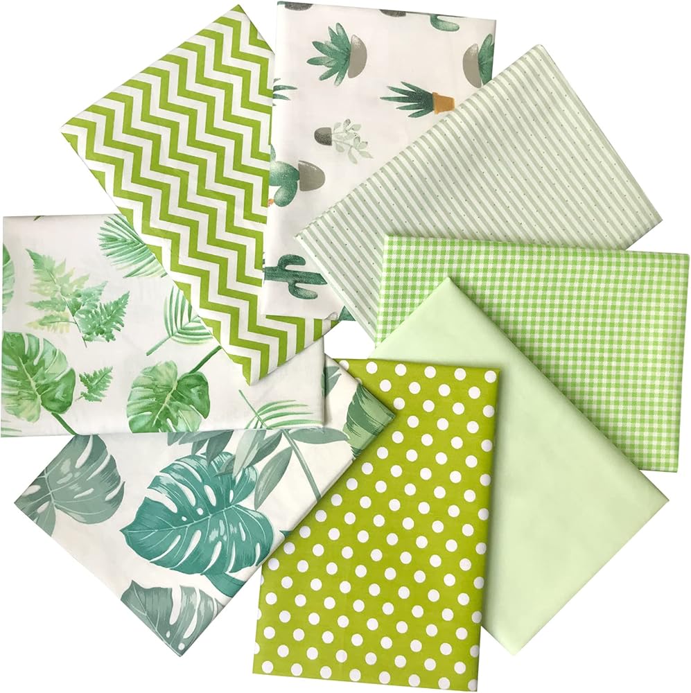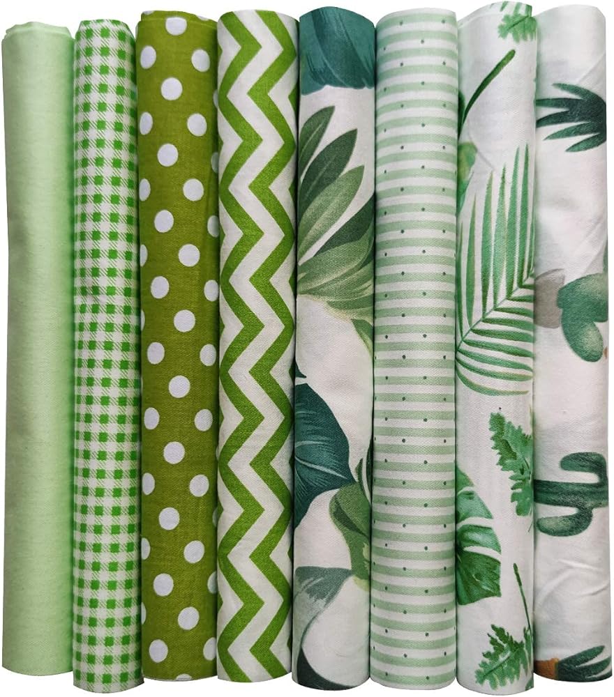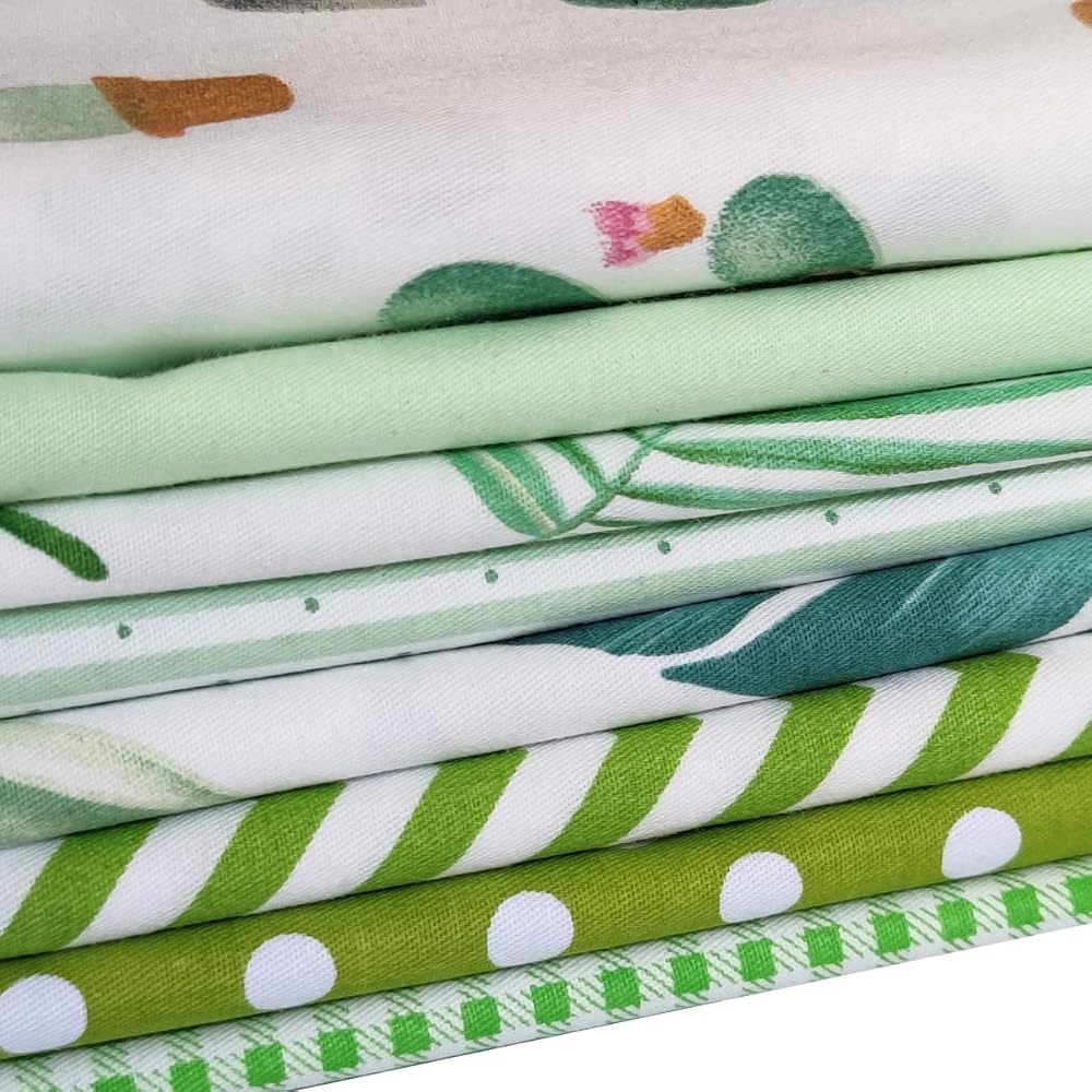 Misscrafts 8pcs Cotton Craft Fabric Bundle 18" x 22" Pre-Cut Quilt Squares Fat Quarters Quilting Fabric for Sewing Crafting Patchwork DIY Scrapbooking Green Rose