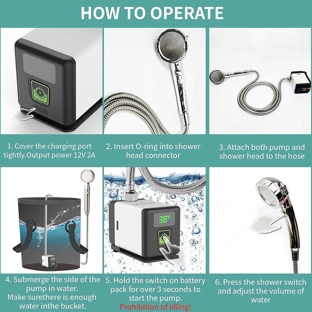 Outdoor Camping Essential - Equipped with a 12V Brushless Motor and Stainless Steel Shower Kit, Easily Pressurize for a Mobile Shower Room. Say Goodbye to Sweaty Nights, Enjoy Refreshing Camping, and Sleep Peacefully.