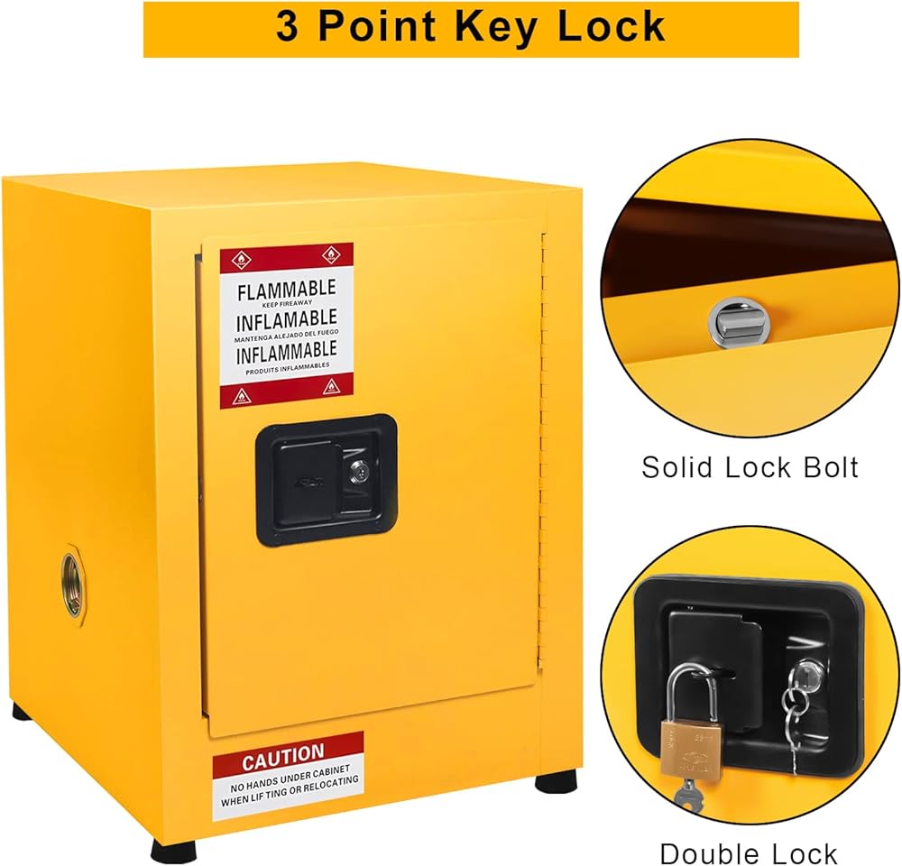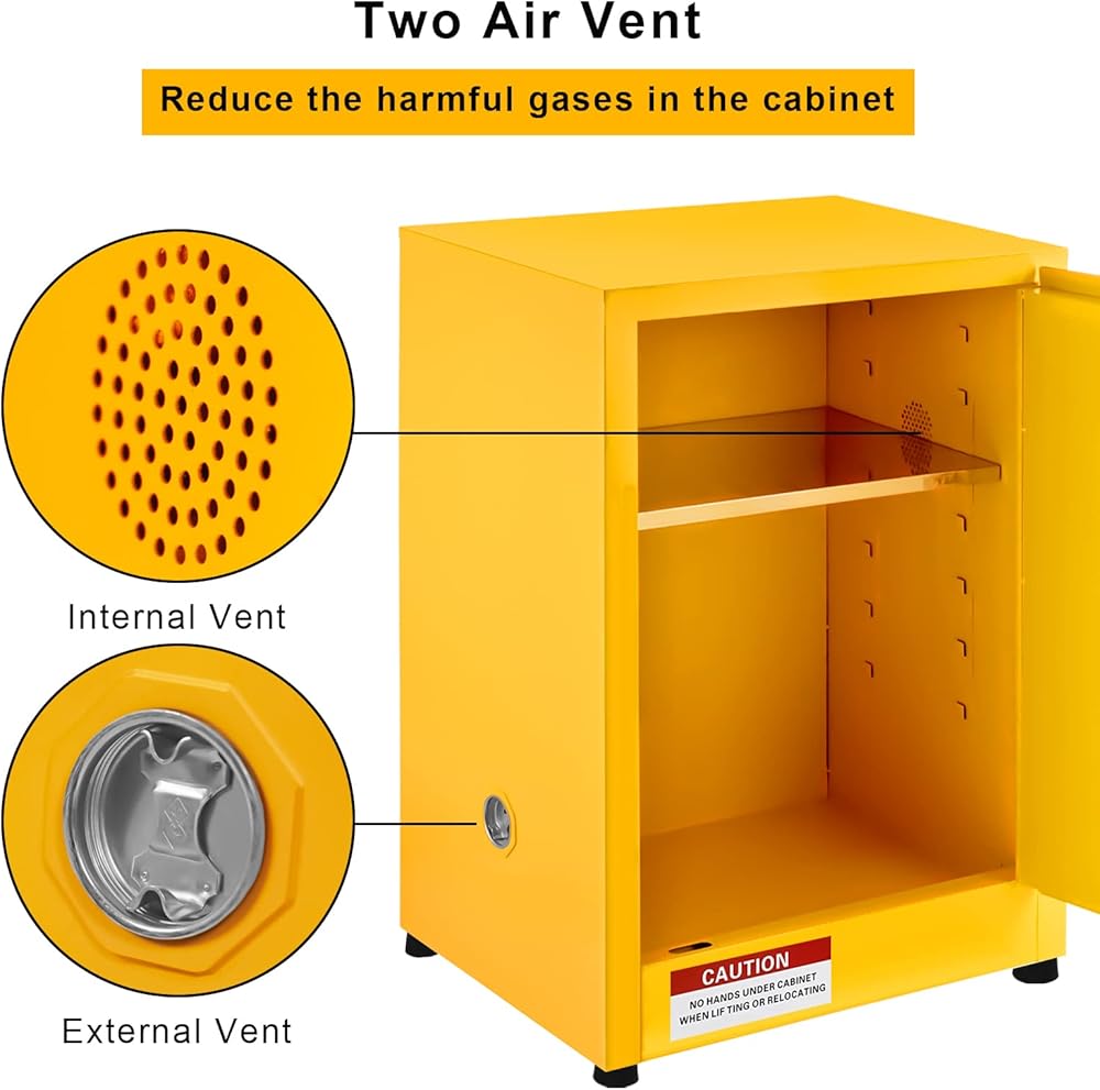 • International Certification: This yellow hazardous cabinet storage has obtained multiple international certifications, including ROHS, and explosion-proof certificates. Widely used in commercial industrial and home to store alcohol, glue, gasoline, banana oil, etc.