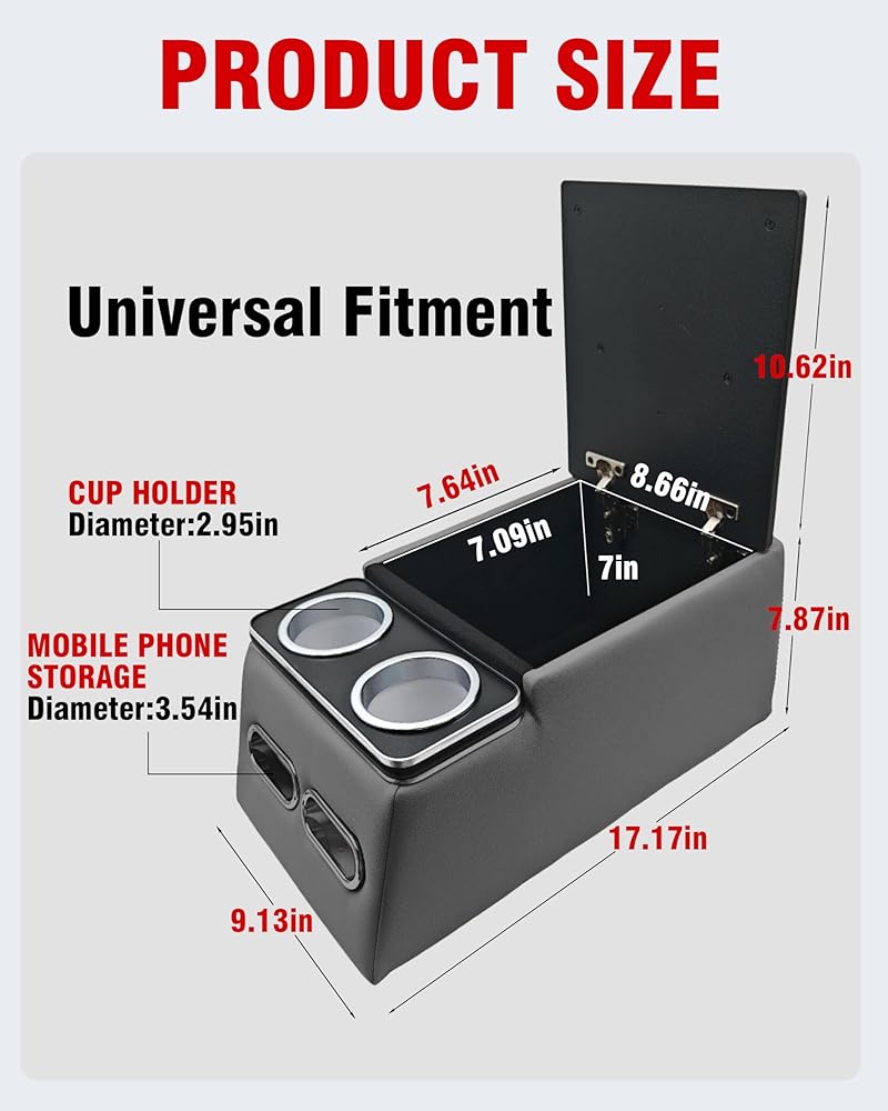 【Fitment】Designed with universal fitment, this console can be installed in any vehicle without an OEM center console. However, please make sure to check there is enough space for proper installation