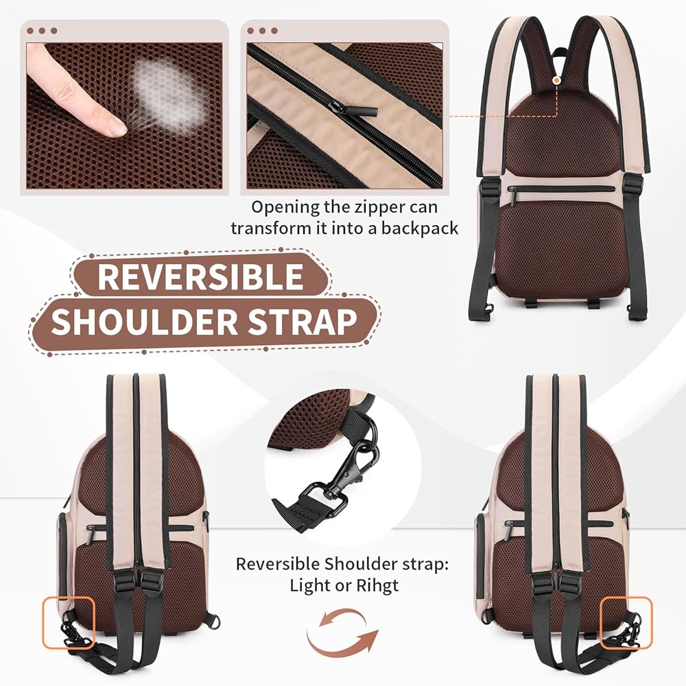 【2 in 1 Latest Concept & Appealing Design】Our camera sling bag combines the style of a chest bag and a backpack, making it convenient for inserting and extracting the camera. By opening the zipper on the shoulder strap, it can also be used as a camera backpack. It serves as both a camera backpack for photography and a daily chest bag for travel, hiking, cycling, or leisure activities.