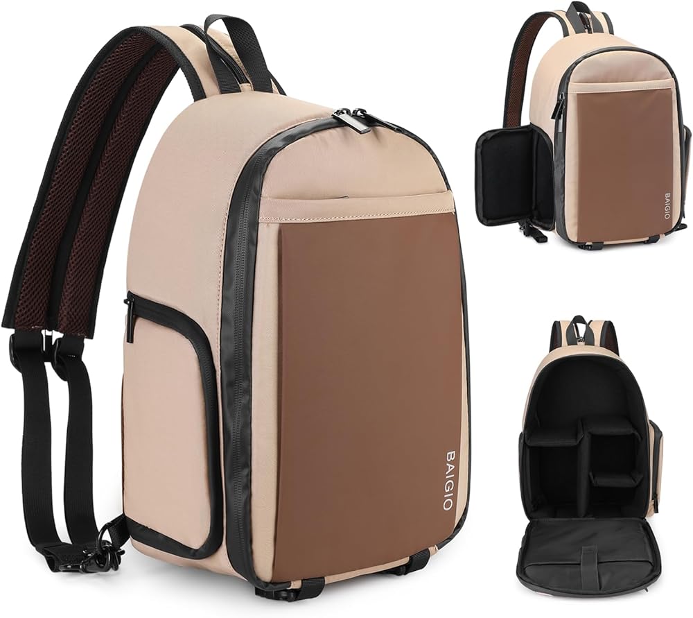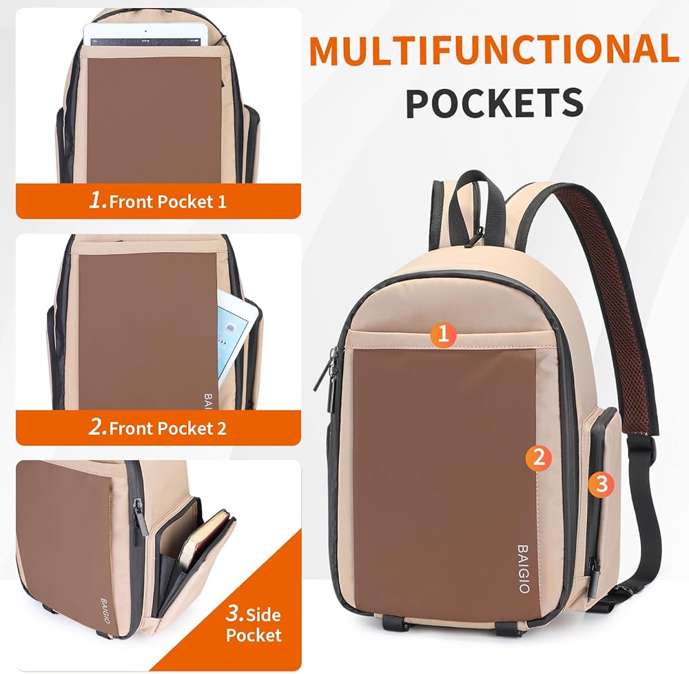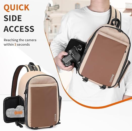 【Ergonomic Design】The mesh padding on the shoulder straps and back provides high elasticity, ensuring decompression and comfort even during extended carrying periods. This camera sling bag can also accommodate clothing or other items for daily use during travel, cycling, work, and more when you don't have a photography plan. BAIGIO offers warm customer service. Please feel free to contact us at any time if you have any questions.