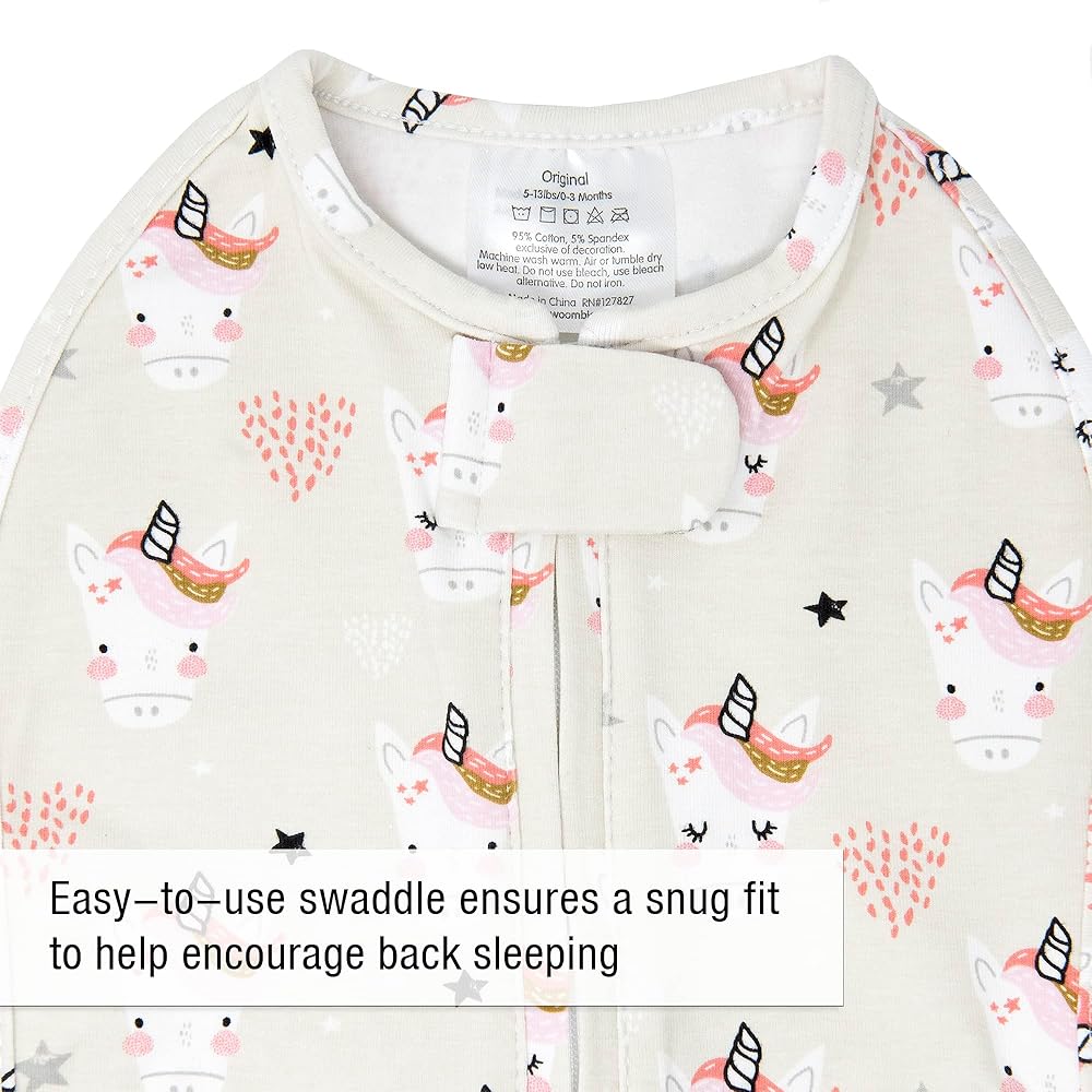 Self-Soothing: The Original Woombie is a one-step light, breathable baby swaddle designed with multi-dimensional stretch and a zipper to prevent unraveling; this wearable baby blanket encourages back sleeping and self-soothing; the stretchy but snug fit moves "with" the baby, simulating the feeling of being held, touched, and cuddled