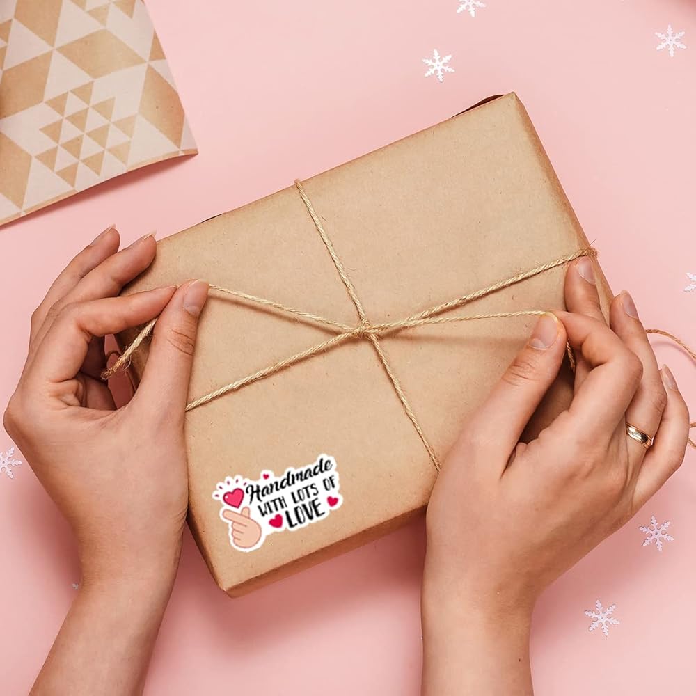 Cute Hand Made with Love Stickers,Funny Handmade with Lots of Love Business Stickers,Handmade Stickers,Handmade Package Stickers,Mail Envelopes Stickers for Small Business 500 PCS