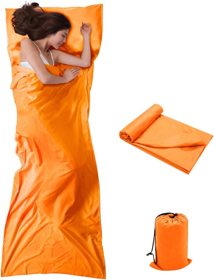 【Stretch freely】- OTDEST sleeping bag liner ultralight suitable for all people to stretch their limbs. This liner is over sized at 82 inches long x 63 inches wide (160 * 210cm) with a pillow pocket. You can use it spread out and turn comfortably in your space sleeping bag or hostel bed. When not in use, it compacts neatly into its small 6" x 9" carry bag, easy to carry