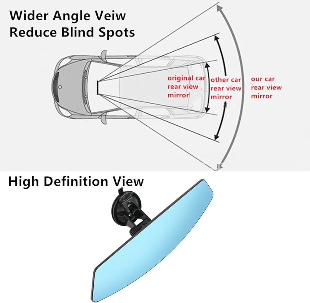 Car Rear View Mirror with Adjustable Suction Cup,Wide Angle Reduce Blind Spots 12.6inch HD Universal Panoramic Interior Rearview Mirror for Cars,SUVs,Trucks,Vehicles Blue