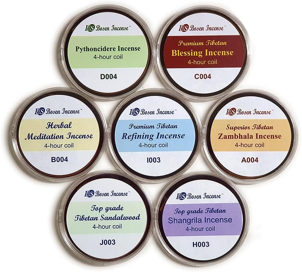 This 7 4-hour coil incense samples set includes 7 bosen's classic Tibetan incense sample coils: