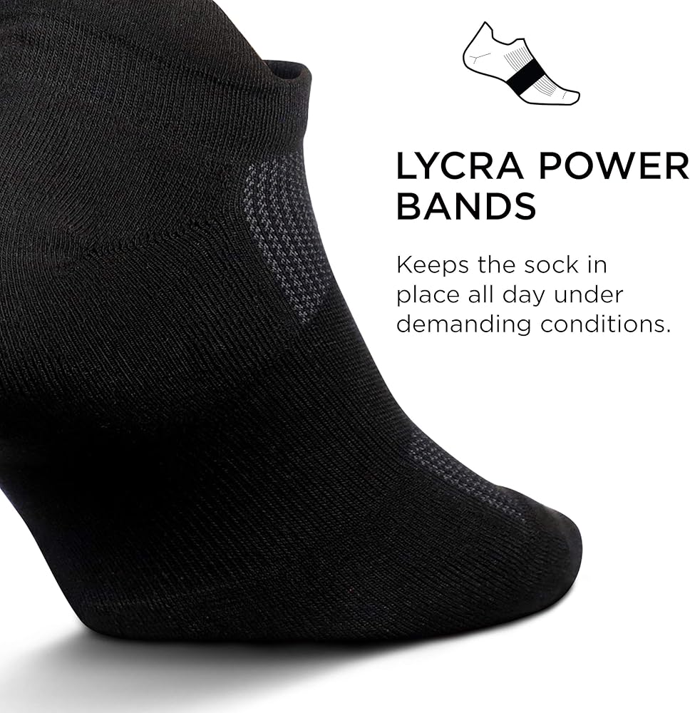 MAXIMUM SUPPORT: Power bands of Lycra hug your entire foot for maximum support. This snug, supportive fit eliminates movement to prevent blisters. Y-heel construction keeps the sock from sliding into the shoe.