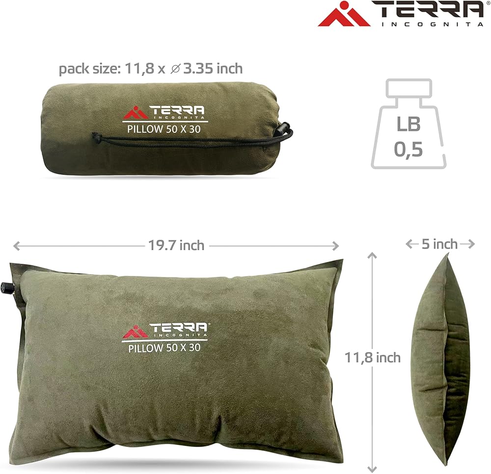 Measuring 19.69 x 11.81 x 5 inches when fully inflated, our pillow is the ideal size for a great night's sleep, no matter where your adventures take you. Its compact size makes it easy to pack and transport, making it the perfect choice for backpacking and travel camping pillow enthusiasts.