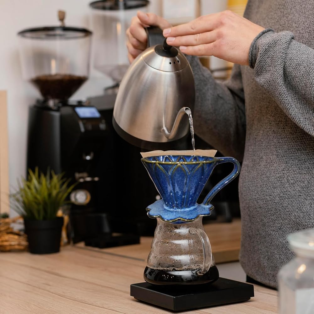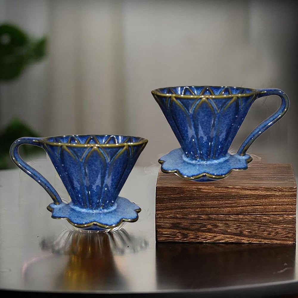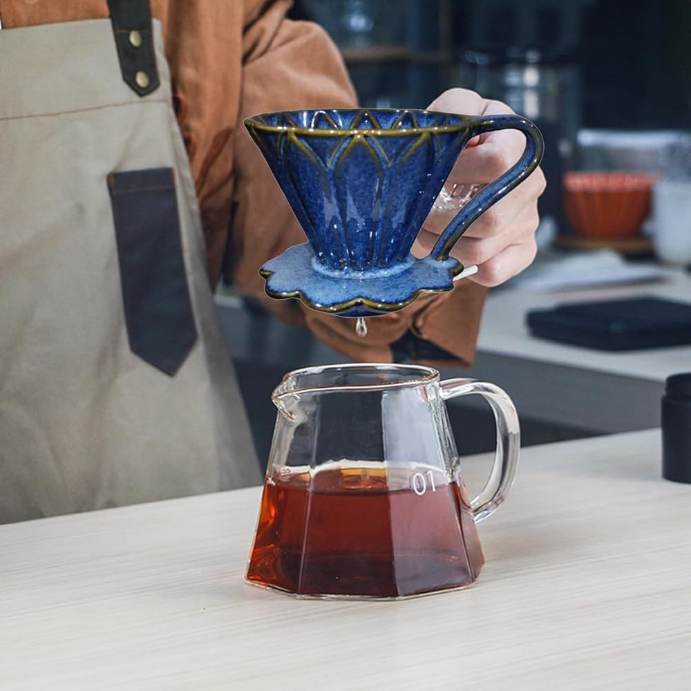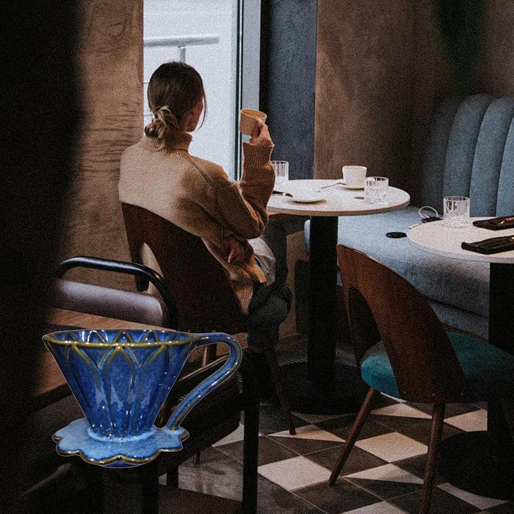 Pour Over Coffee Maker,Resin Coffee Dripper,V60 Coffee Filter, 1-2 Cups,Gifts for Women and Modern Kitchen Decor (Petaloid Blue)