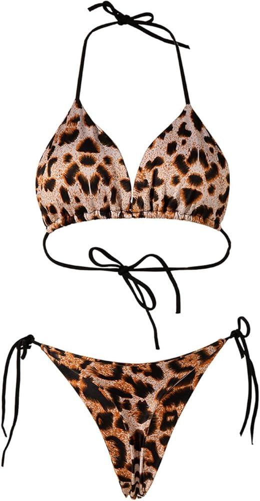 STYLISH PRINT: This leopard print bikini set bathing suit for women features a triangle top and thong bottom for a bold, wild look that's sure to turn heads at the beach or pool.