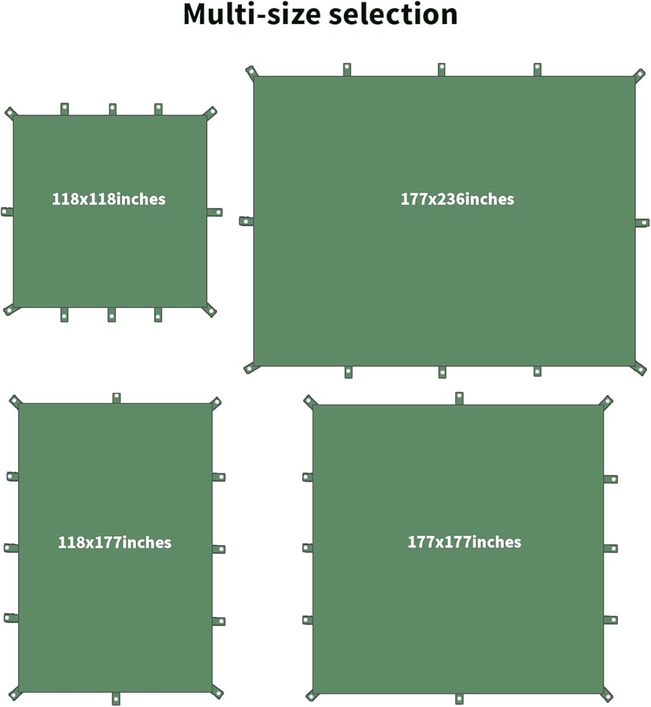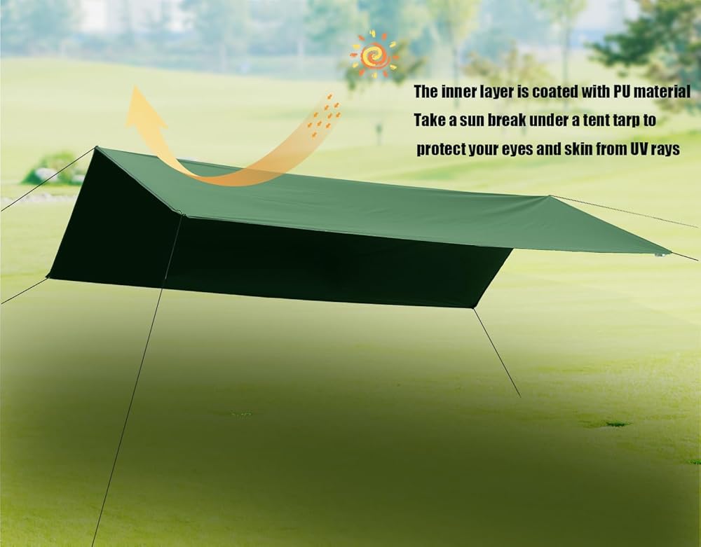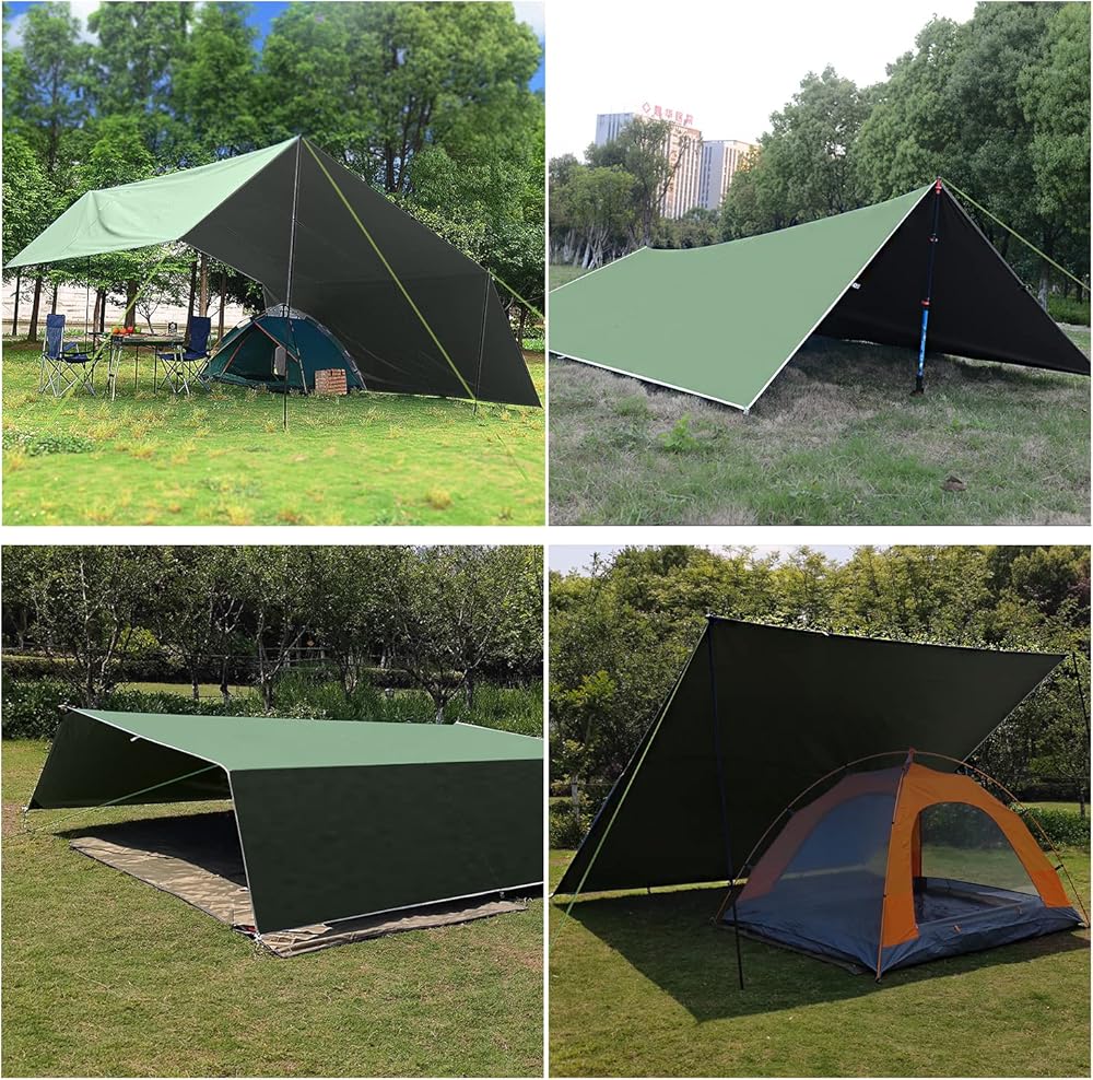 MULTIFUNCTIONAL TARP - The multifunctional waterproof tent tarp can be used as sun canopy or rain tarp with stakes and ropes which perfectly suitable for outdoor camping, hiking, beach activities climbing, fishing, travelling, picnic mat, etc.