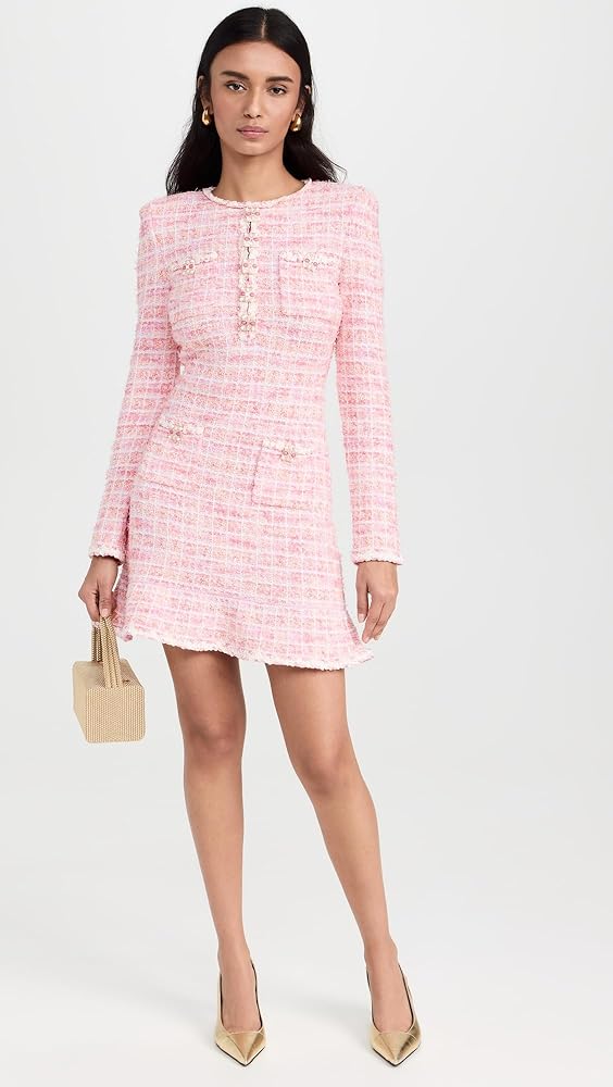 Self Portrait Women's Pink Check Knit Mini Dress