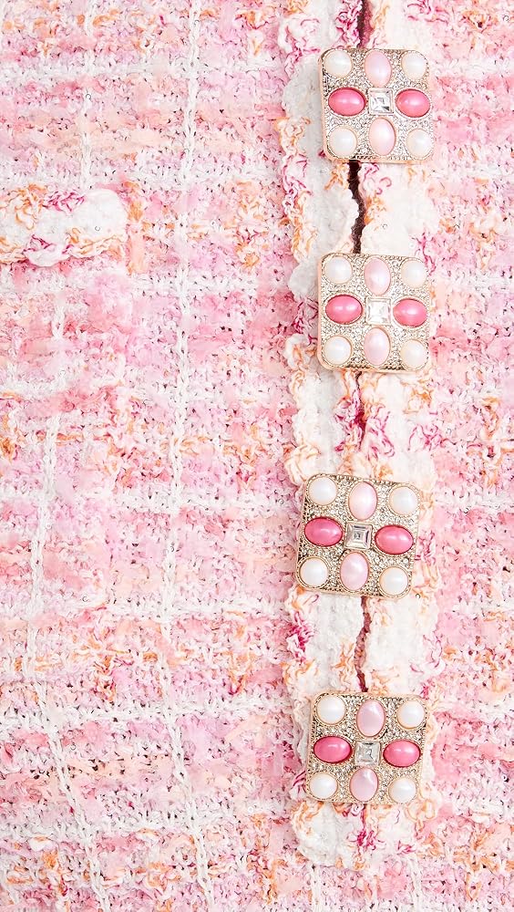 - Sequin threading throughout, Removable shoulder pads, Beaded button embellishments, Hook-and-eye clasps at neckline
