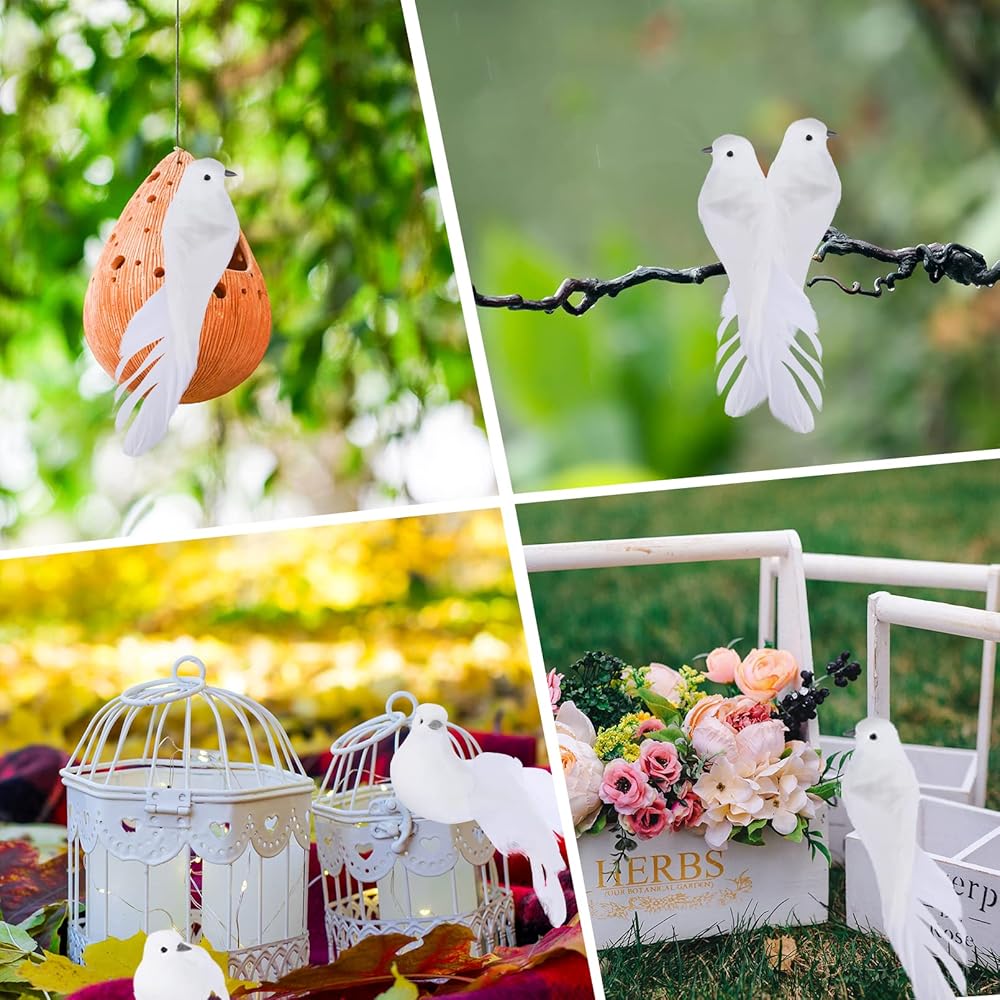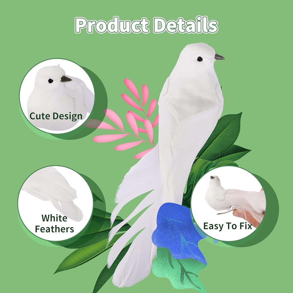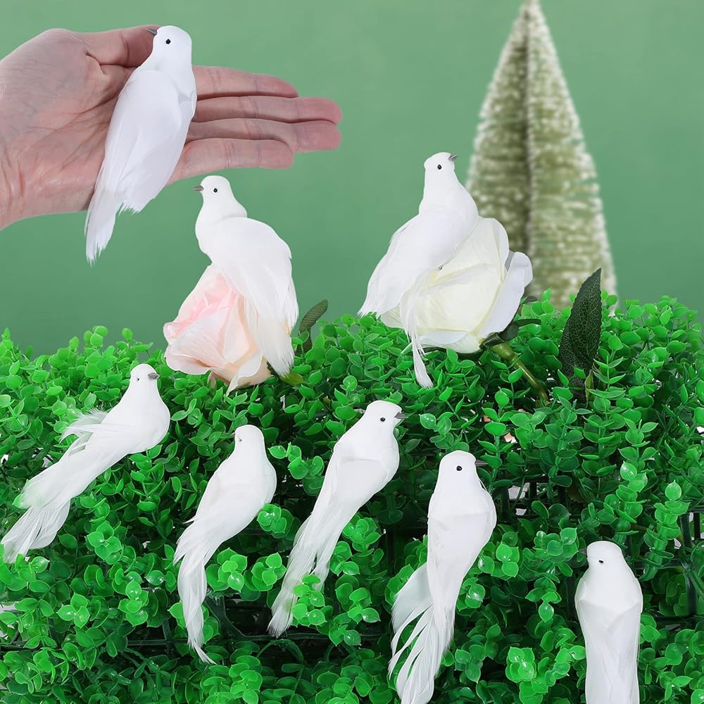 🕊️ You Will Get: There are 12 artificial white doves in the parcel, enough for your replacement and use. These mini birds enough to meet your home decoration needs, ideal for the bird lover.