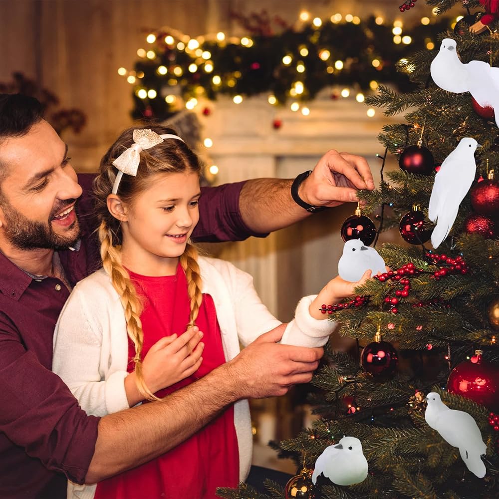 🐤Easy to Use: Each christmas dove bird has a metal clip for fixed use, beautiful and easy to install, so you can easily fix the bird where you want it to be, such as wreath,Christmas tree or other decoration.