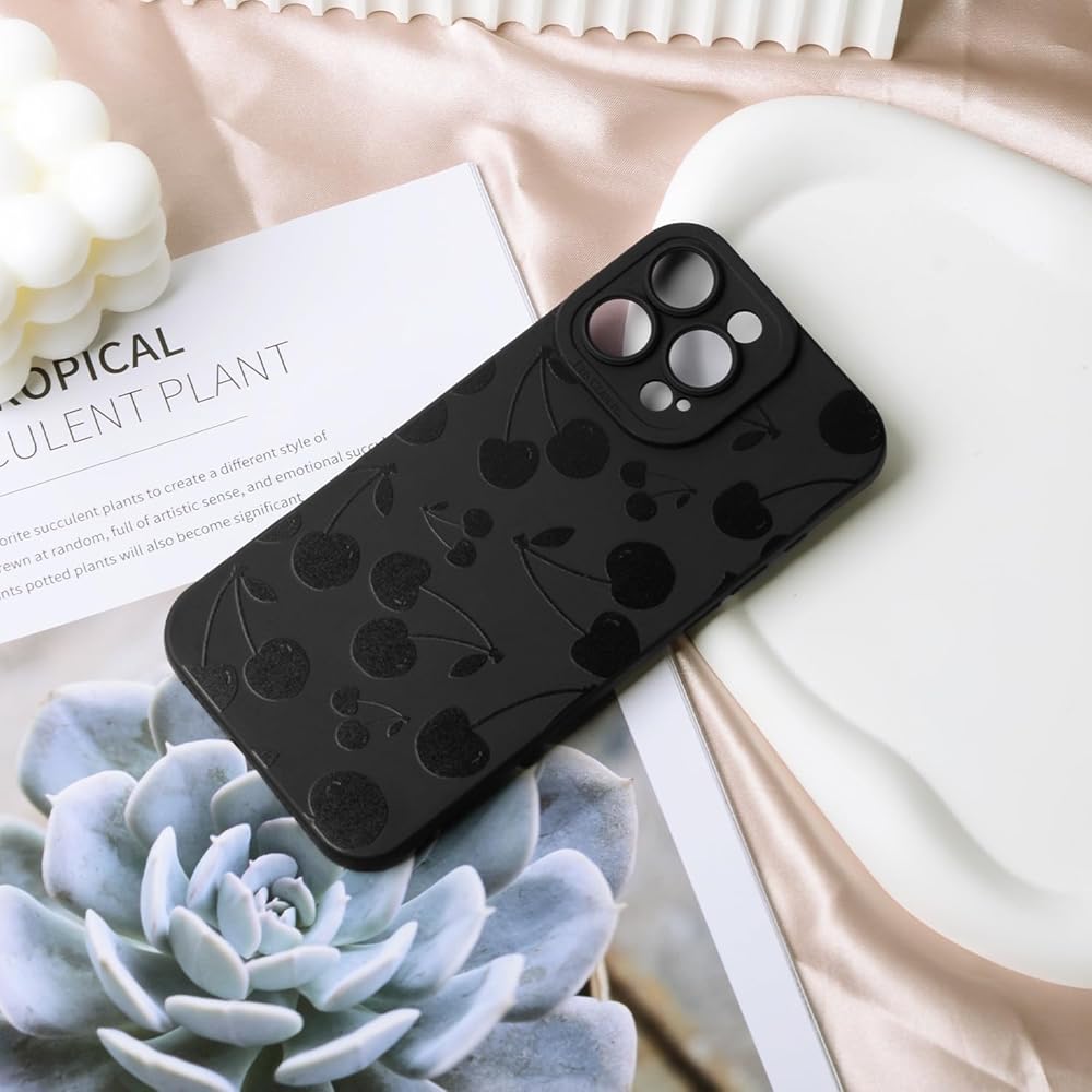 Potok Black Cherry Phone Case for iPhone 11 Pro, Black Cute Cherry Pattern for Women Girls, Soft TPU Slim Profile Shockproof Protective Phone Case for iPhone 11 Pro
