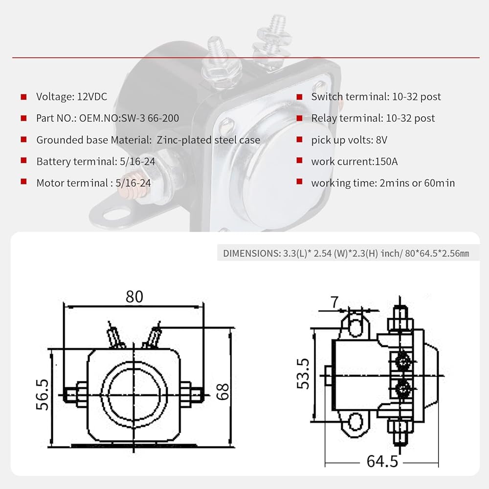 【Product parameters】Voltage: 12VDC, motor terminal 5/16-24,battery terminal 5/16-24, switch terminal 10-32 post, relay terminal 10-32 post
