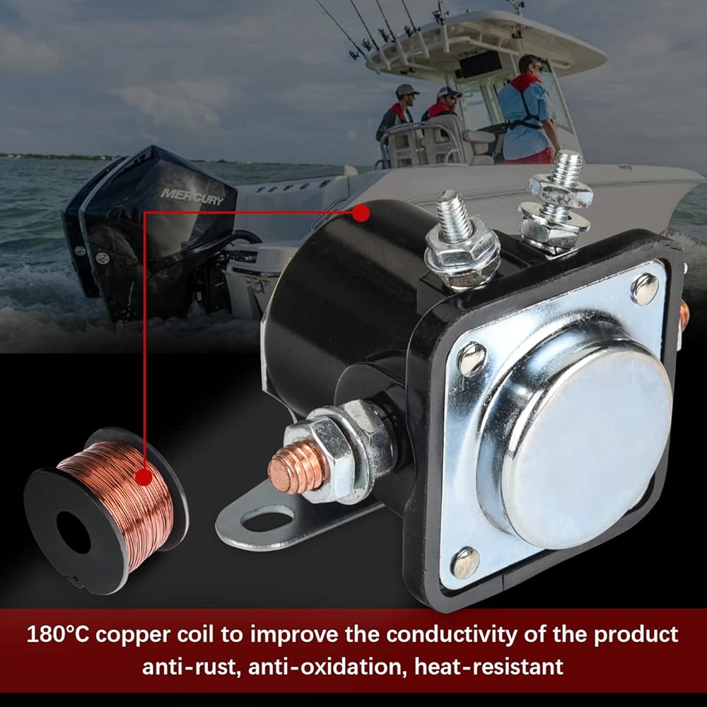 【Quality Material】4-terminal heavy duty solenoid, 180℃ copper coil wire reel,Rugged plastic and copper housing, anti-corrosion, heat resistant, durable.