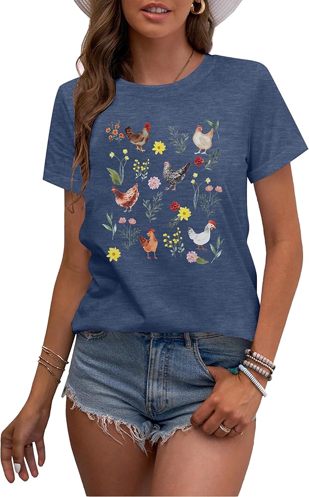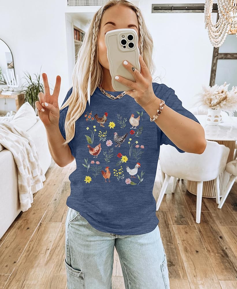 MATERIAL AND GARMENT CARE: This wildflower chicken shirt is made of cotton blend and you will feel comfortable be cause it is friendly to your skin. Recommend not blench in order to protect the special graphic and cute letter.