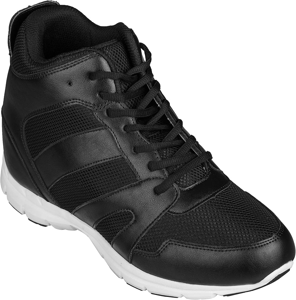 CALTO Men's Invisible Height Increasing Elevator Shoes - Black Leather/Mesh Lace-up Sporty Trainers- 4 Inches Taller - G3330 - Size 6 D(M) US
