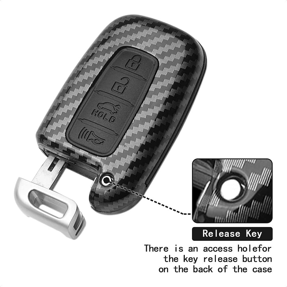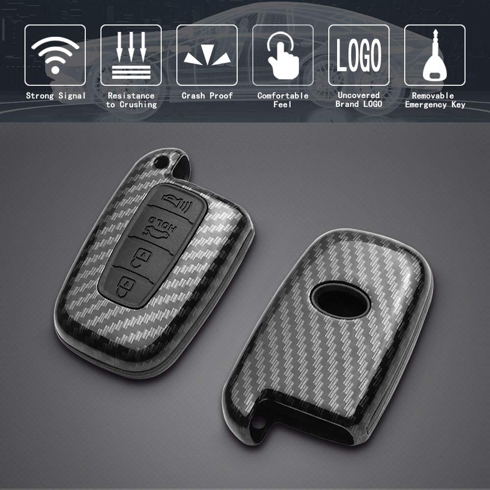 TANGSEN Key Fob Case Black Cover Compatible with Hyundai Azera Elantra GT EQUUS Genesis Coupe Santa FE Sonata Tucson Veloster for KIA Borrego Forte Sorento Soul SPORTAGE 4 Button Keyless Entry Remote