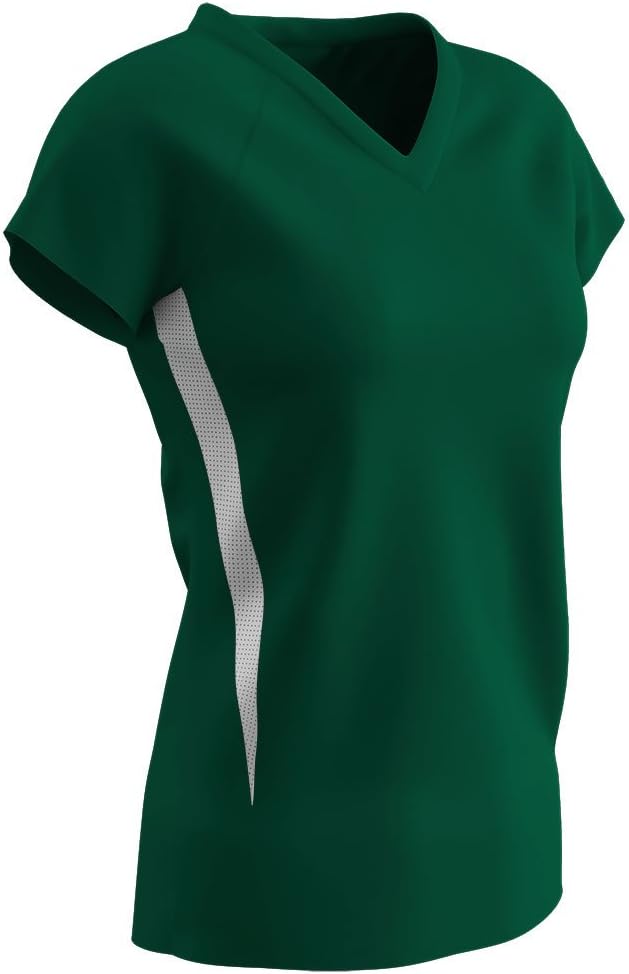 The CHAMPRO Spike Volleyball Jersey is ideal for volleyball game uniforms for athletes of all skill levels. Pair it with the Set Volleyball Shorts to create a matching uniform, or wear with other bottoms. Designed with raglan cap sleeves for ultimate freedom of movement and mesh side inserts for breathability, helping athletes stay cool. The jersey's fitted cut is designed to follow the contour of the body while allowing for ease of movement. Built-in Dri-Gear technology wicks away moisture and increases comfort. Available in women's sizes XS-2XL in 8 colors.