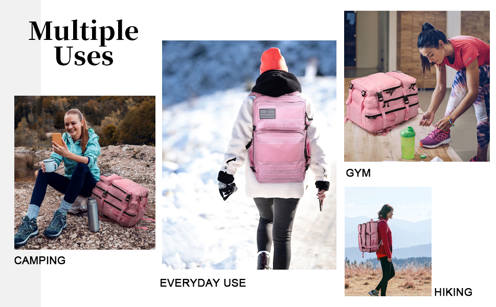 💞Multiple Uses and After-sales Service: Tactical backpack for women allow you to fit almost all of your essentials inside for hundreds of uses, including everyday travel, fitness, training, patrolling, hiking, trekking, hunting, survival, camping, and more. If you encounter any problems when using the product, please contact us, we will help you solve the problem within 12 hours.
