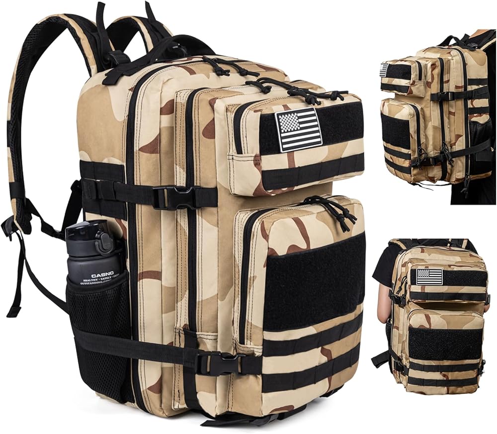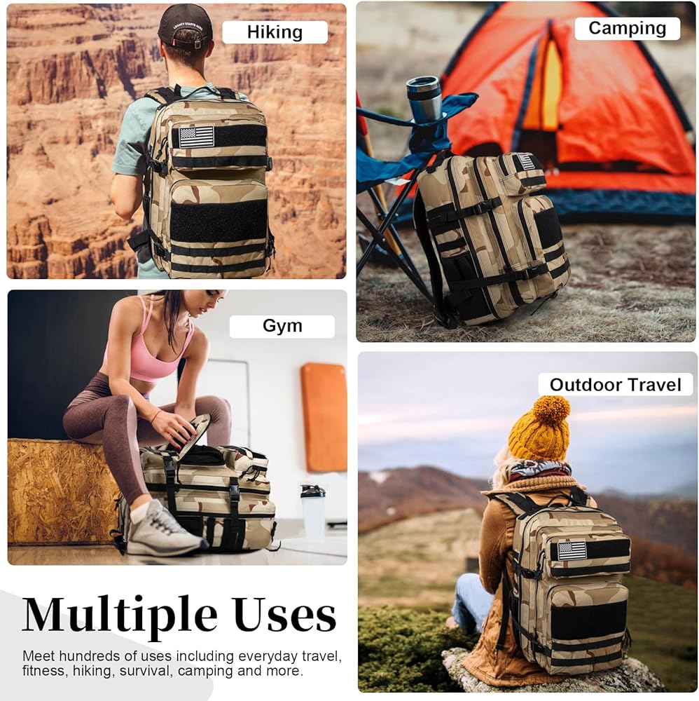 🌟Durable and Waterproof Military Backpack: The tactical backpack is reinforced and double-stitched at all pressure points, and they are all made of thickened oxford cloth material, which is sturdy and durable. The accessories all use heavy-duty zippers and practical drawstrings, which are smooth and firm without breaking. The special coating of the military backpack for men and women makes our training backpack waterproof and scratch-resistant.