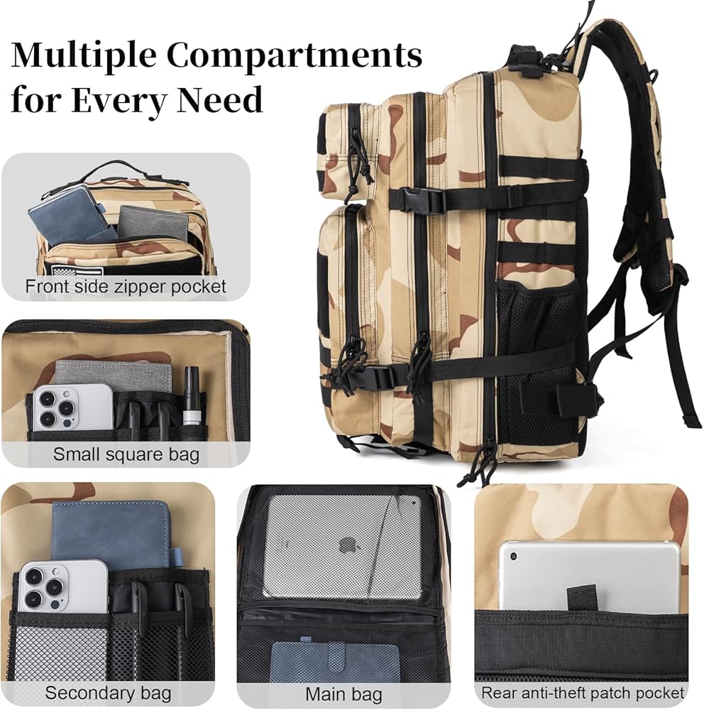Tactical Backpack for Men and Women, 45L Large Capacity Military Backpack, Molle Backpack used for Outdoor Hiking, Fitness, Camping, Daily Work, Hunting