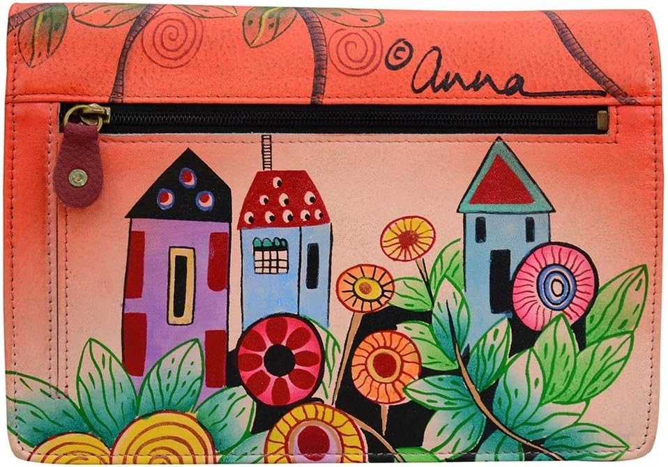 FUNCTIONAL DESIGN - Designed for both beauty and form, each wallet features a flap open entry, eight credit card holders, two ID windows, two open wall pockets, one zippered pocket, rear zippered pocket with gusset & 26"/66.04cm removable shoulder strap