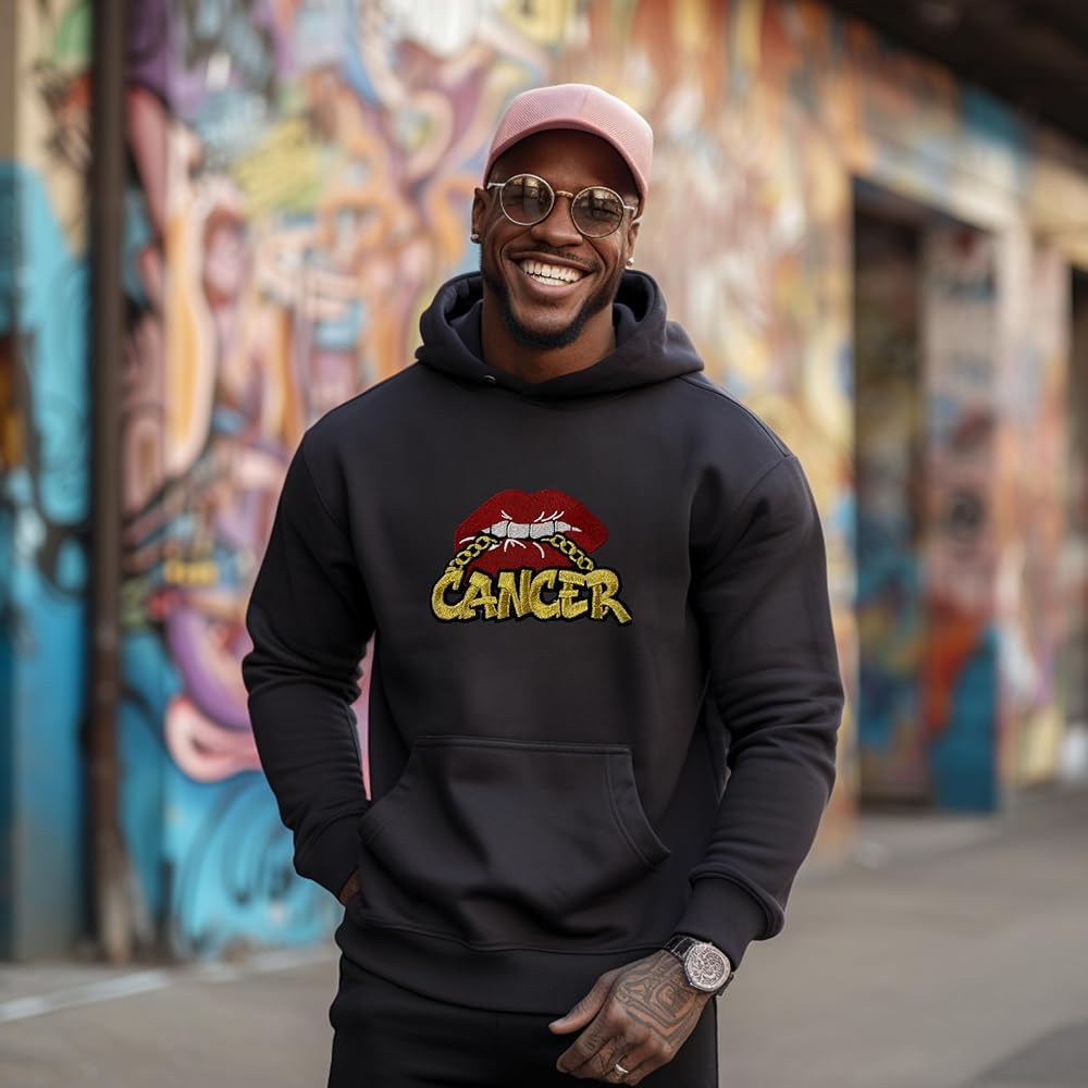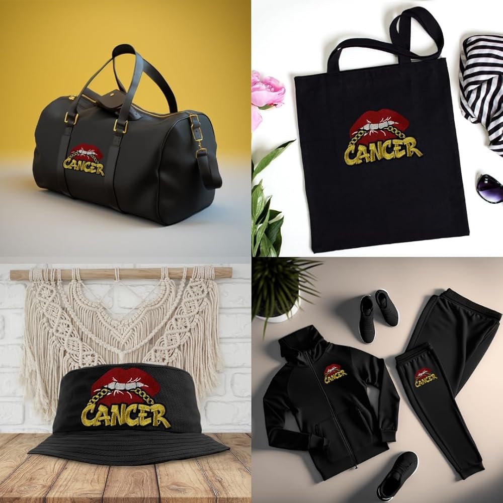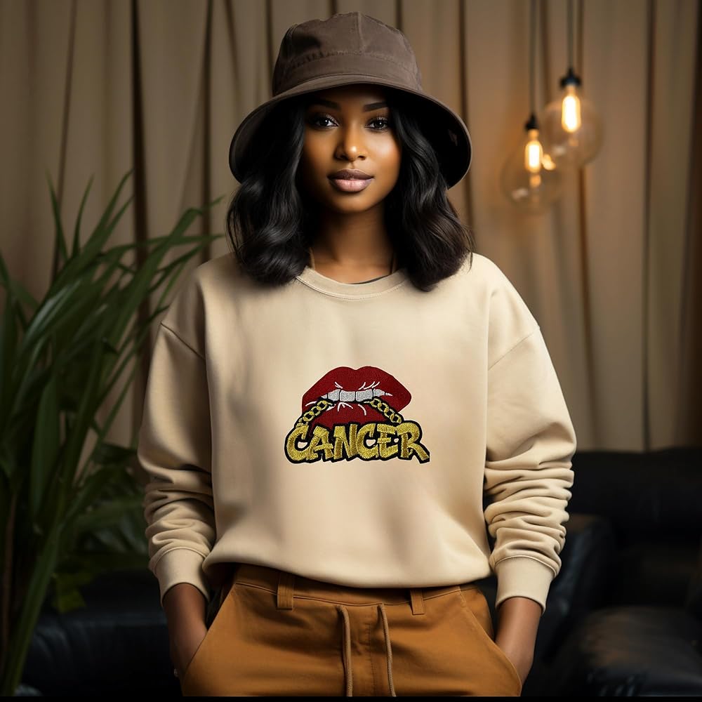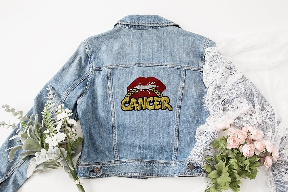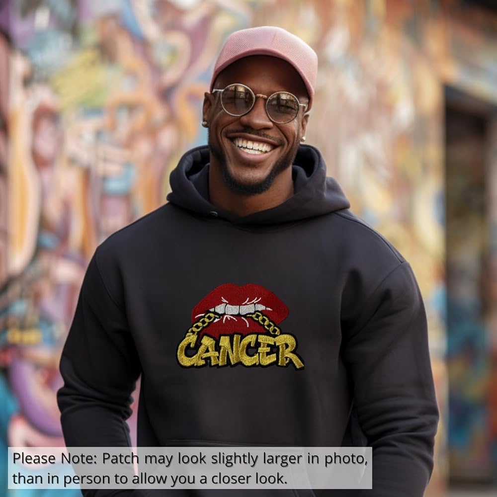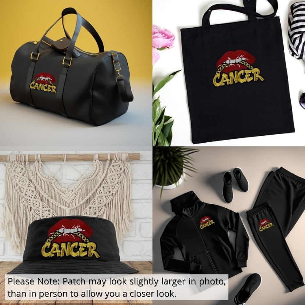 PATCHPARTYCLUB Poppin' Red Lip Cancer with Gold Metallic Chain, Size 4", Iron-On Embroidered Patch, Astrology Zodiac Patch, DIY