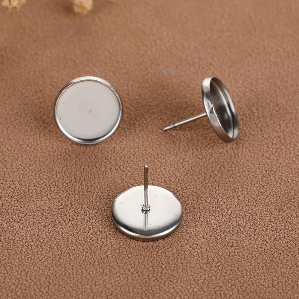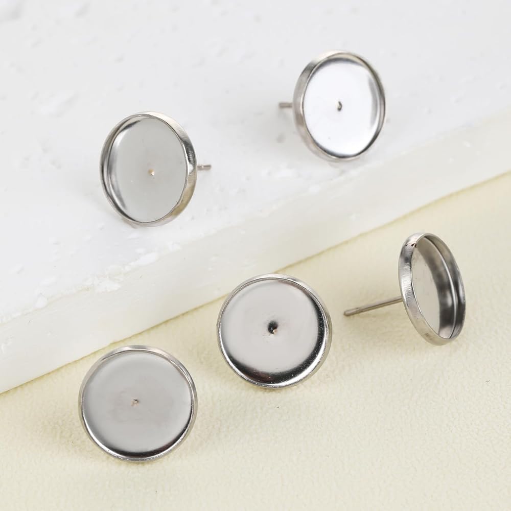 100pcs Stainless Steel Blank Stud Earring Bezel Setting for Jewelry Making with 100pcs Surgical Steel Earring Backs DIY Findings (Inner Size 10mm)