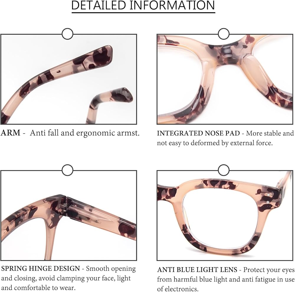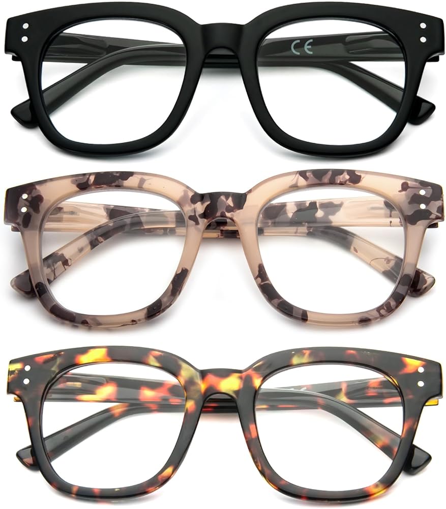 Oversized Stylish Reading Glasses: The retro design with wide and square edges is suitable for all face shapes (round, square or heart) and can be easily combined with different styles of outfits to create a new style.